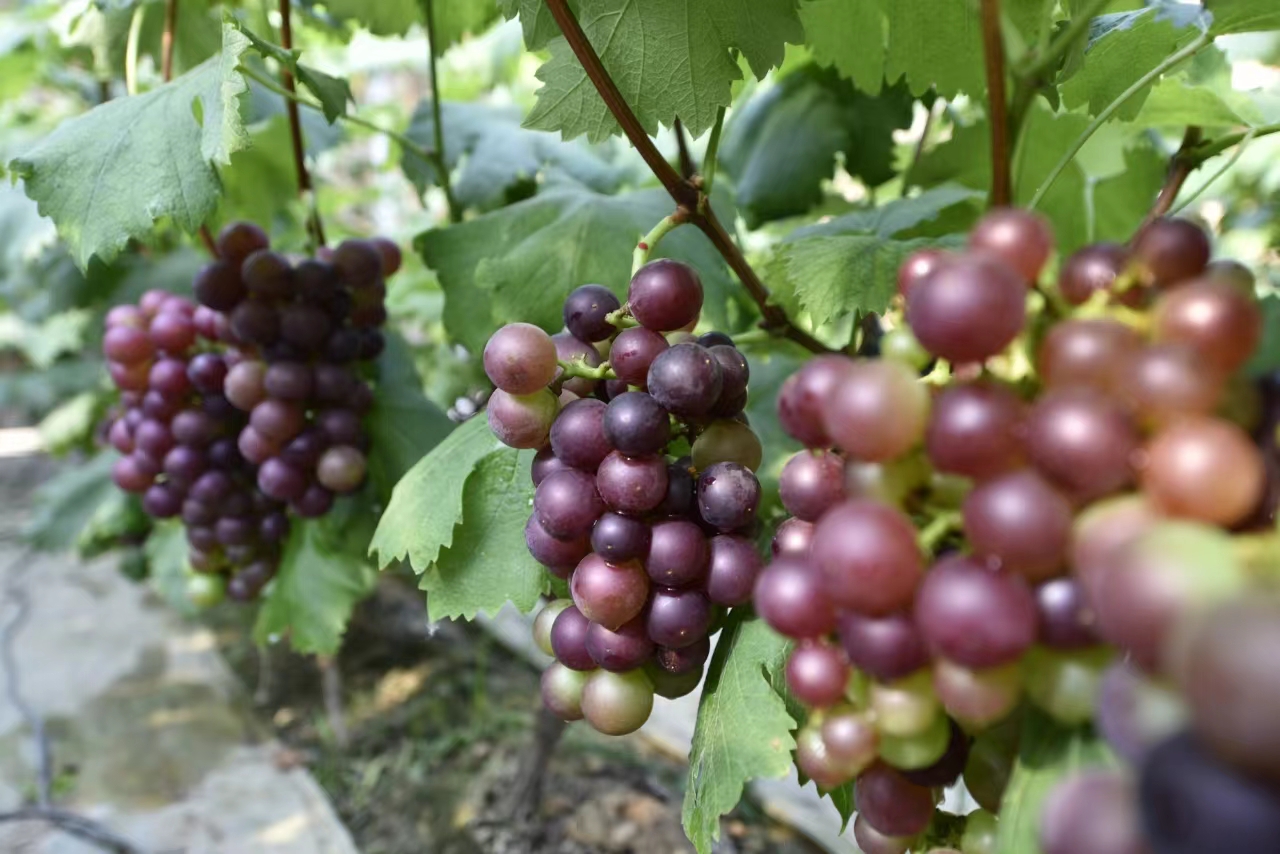 近年來,張口村一直以發展設施葡萄為主導產業。村里先后引進了陽光玫瑰、夏黑、緋紅、藤稔等高產優質早熟品種,通過早中晚熟品種混搭栽植,溫室、大棚、避雨棚混搭建設,采摘期可從每年的3月下旬一直持續到11月中旬,上市時間從原來的50天延長到現在的200多天,形成了品種齊全、周年生產的格局。