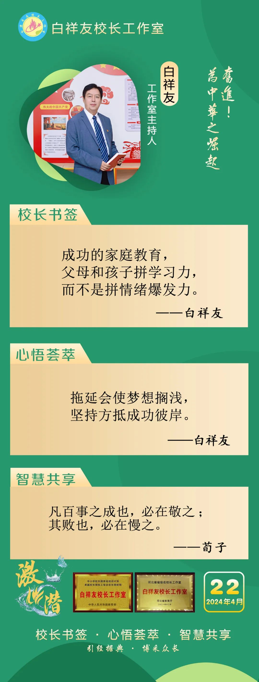 “白祥友校長(zhǎng)工作室”成立于2019年4月,是教育部“國(guó)培計(jì)劃”中小學(xué)名校長(zhǎng)領(lǐng)航工程、河北省首批名校長(zhǎng)工作室,目前省內(nèi)外成員校20個(gè)。工作室堅(jiān)持“資源共享、智慧共融、互助共贏”理念,已成為思想碰撞的交流場(chǎng),資源共享的品牌站,成果展示的輻射源。