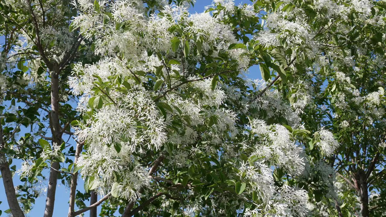 因每年4月都會開滿白花,流蘇又被稱為“四月雪”。流蘇樹是世界上最古老的樹種之一,國家二級保護植物,在北方的大地是比較少見的樹種。