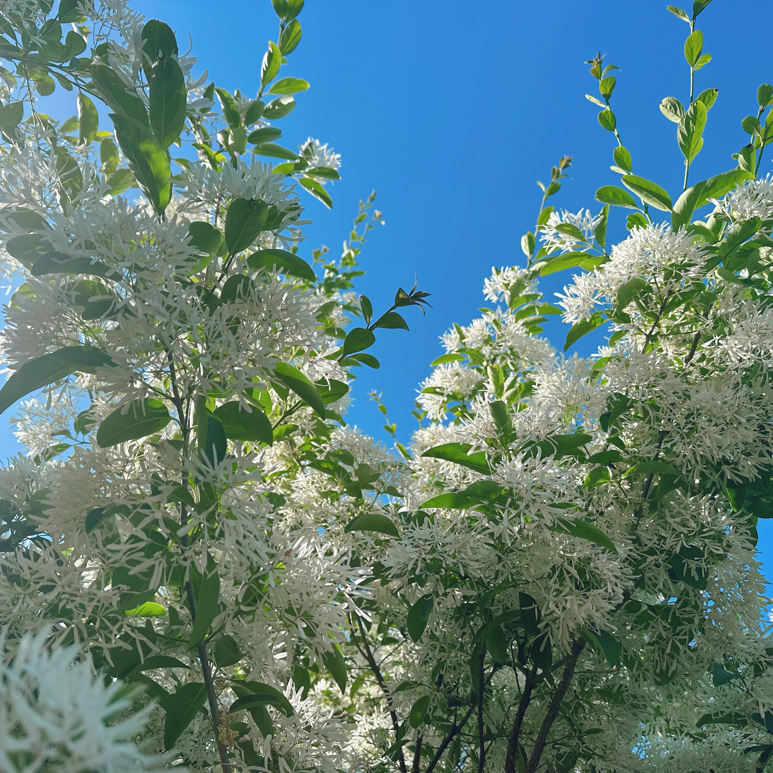 流蘇樹是木樨科流蘇樹屬,花序呈圓錐形,樹冠碩大,高大挺拔,樹形優美。生出的白色小花,很像古代仕女服飾流蘇,故名流蘇樹。流蘇花期長達半個月,花開之時,花瓣纖細、潔白無瑕,香氣四溢、清麗可人。它不僅可供觀賞,嫩葉和花還可以做茶葉飲用。