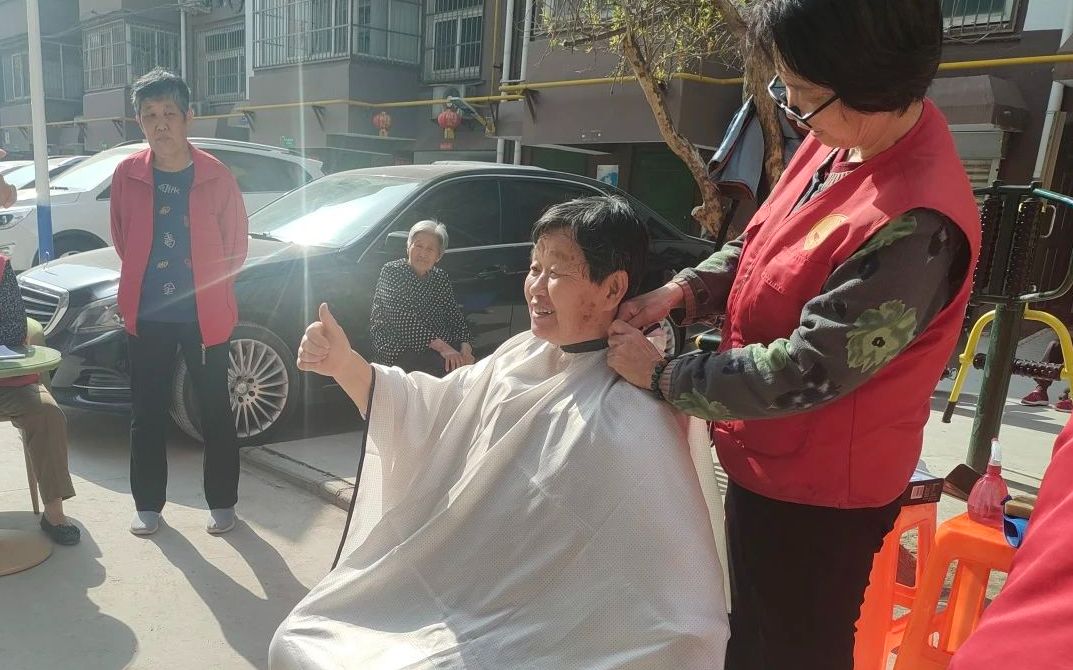 在活動現場,凳子、剪刀、梳子……志愿者剛剛擺放好理發工具,就已經有人在旁等待了。志愿者貼心地為老人圍好圍布,詢問老人喜歡的發型,根據老人的喜好進行修剪,一邊理發一邊和老人嘮家常,一會就為老人理好了發。“我就是買菜路過,這一下給我又省了十塊錢。”居民王強的一番話惹得笑聲四起。