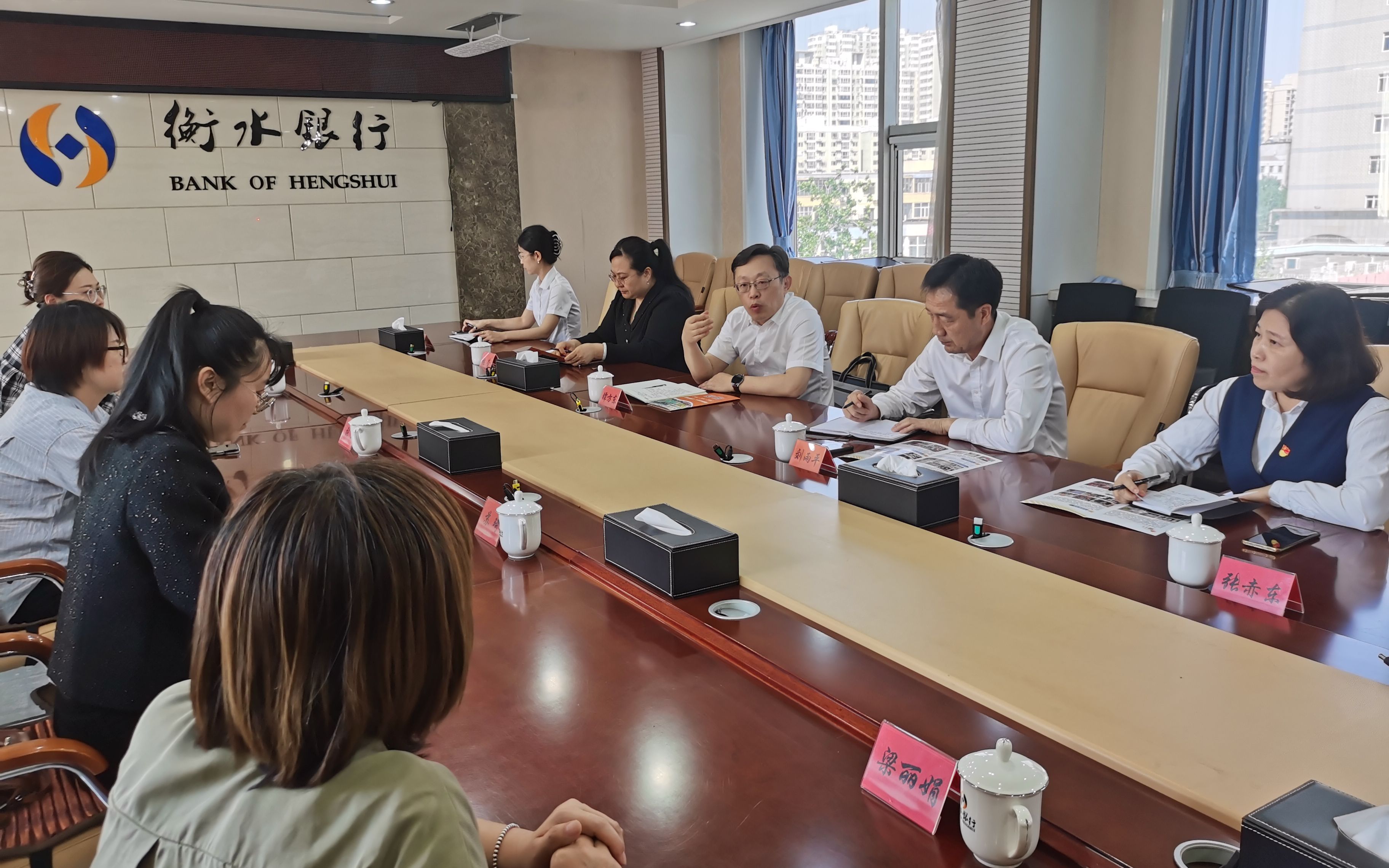 4月24日,河西街道黨工委副書(shū)記、政法委員蘇琦一行四人來(lái)到衡水銀行將一面寫(xiě)有“共駐共建聚合力、情系社區(qū)暖民心”的錦旗交到該行工會(huì)主席、機(jī)關(guān)黨委書(shū)記劉雨平手中,并向一直以來(lái)支持社區(qū)發(fā)展的衡水銀行各位領(lǐng)導(dǎo)表示最誠(chéng)摯的感謝。衡水銀行行長(zhǎng)鐔方東熱情接待蘇琦一行,并在會(huì)議室召開(kāi)座談會(huì),參會(huì)人員就雙方黨建共建、民生服務(wù)、普惠金融等方面取得的豐碩成果進(jìn)行了深入交流、探討。