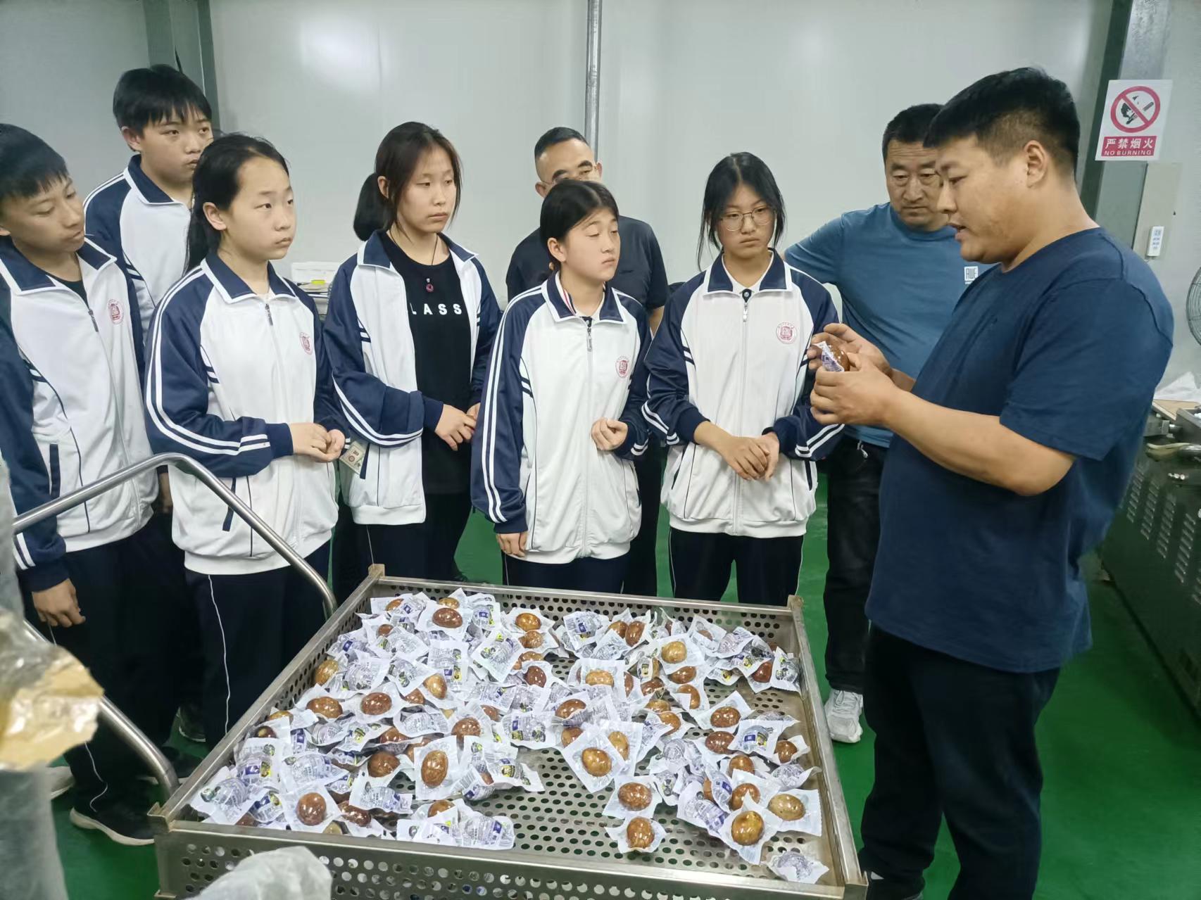 衡水湖烤鴨蛋是衡水特色美食,具有濃厚的歷史文化價值和地域特色,其制作技藝匯聚了湖區勞動人民的智慧和勞動的傳統文化內涵。當天下午,工坊內,“鹽河故道”烤鴨蛋品牌的創始人王鐵證為學生們講解了烤鴨蛋的歷史淵源,以及傳統制作流程,并指導學生們動手參與進來,挑選鴨蛋、調制泥漿、浸泡、烤制……大家在王鐵證的指導下,小心翼翼地參與到烤鴨蛋的一道道制作工序中。“每一道工序聽起來很簡單,但通過現場觀看和嘗試,我們才發現每一步都需要用心,原來美味的烤鴨蛋需要這么精心地制作才能完成。”現場,學生張麗興奮地說。隨后,學生們還參觀了位于濱湖新區半壁店村的烤鴨蛋企業,了解烤鴨蛋制作中的現代化清洗、包裝、殺菌等設備,感受傳統工藝與現代技術的結合。