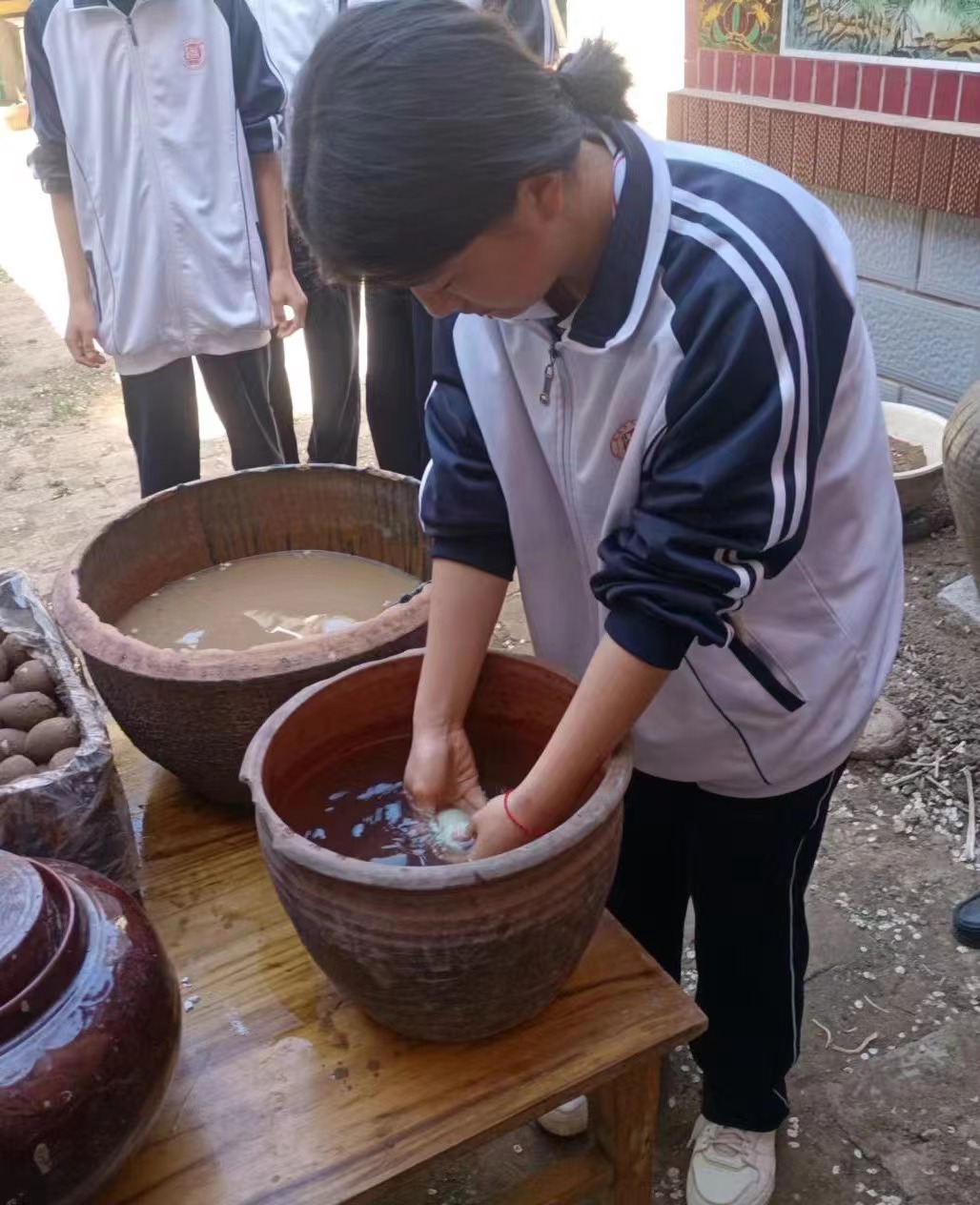 最后,學生們還品嘗剛出爐的烤鴨蛋。他們一邊品嘗,一邊討論著鴨蛋的口感和味道:嫩滑的蛋清透出烤制的焦香味,流油的蛋黃綿密軟糯,美味的烤鴨蛋不僅讓大家滿足了味蕾,更增強了對本地特色文化的認同感和自信心。他們表示,這次經歷將激勵他們在未來的學習和生活中更加尊重和傳承這些寶貴的文化遺產。