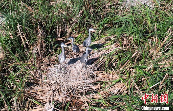 4月24日,一窩小蒼鷺正在等待父母歸來喂食。王鐵良 攝