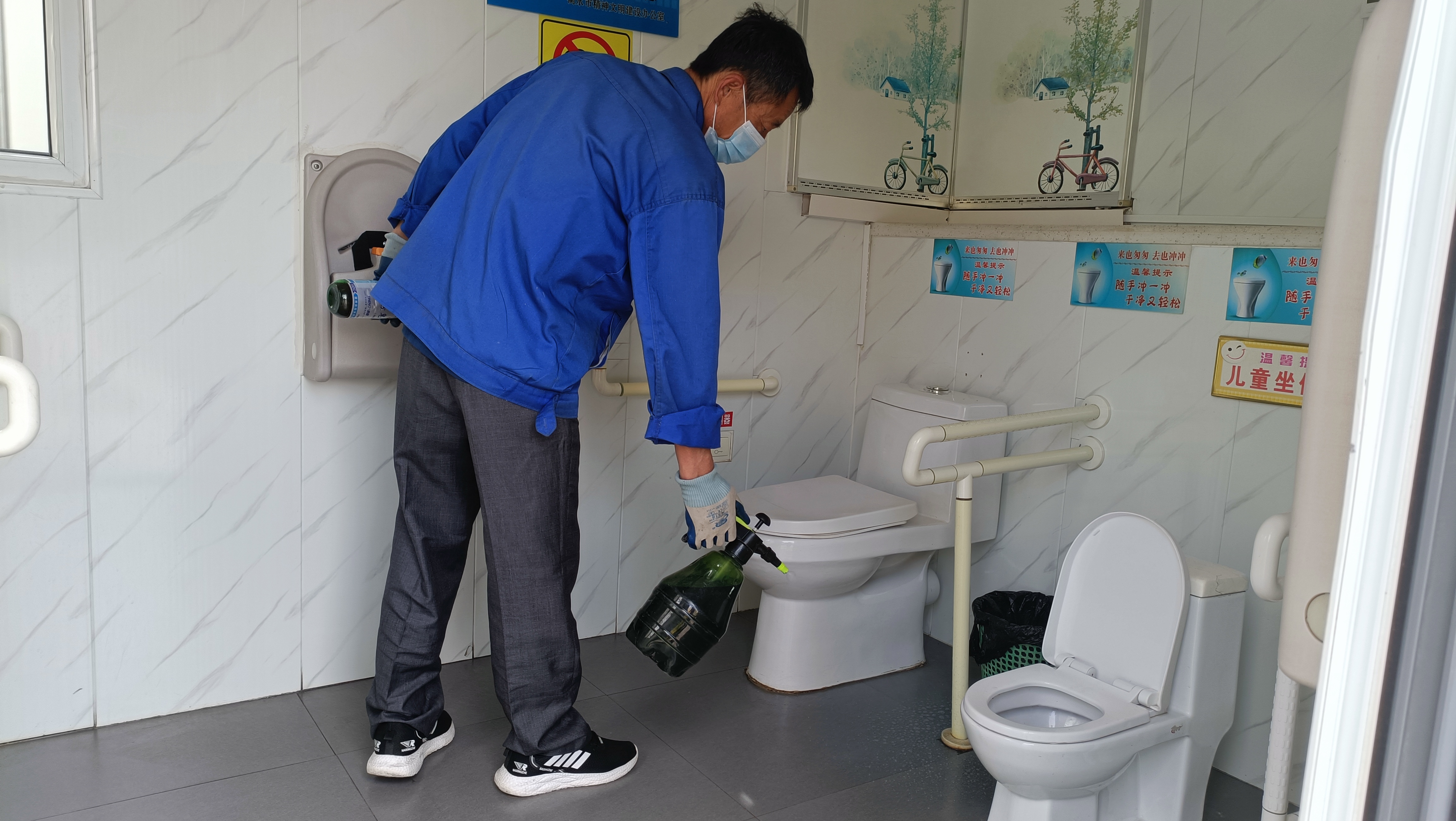 5月1日,五一假期第一天。公廁保潔員杜秋良準時來到火車站廣場的22號公廁,他拿起工具開始一天的工作。檢查、打掃便池、清掃地板、噴灑空氣清新劑,洗手臺、蹲位必須做到干凈如洗,里里外外,每一處都打掃干凈看不到污漬……“假期的人流量比較大,公廁的衛生更不能馬虎,一定要認真仔細地按規定完成任務。”杜秋良說。