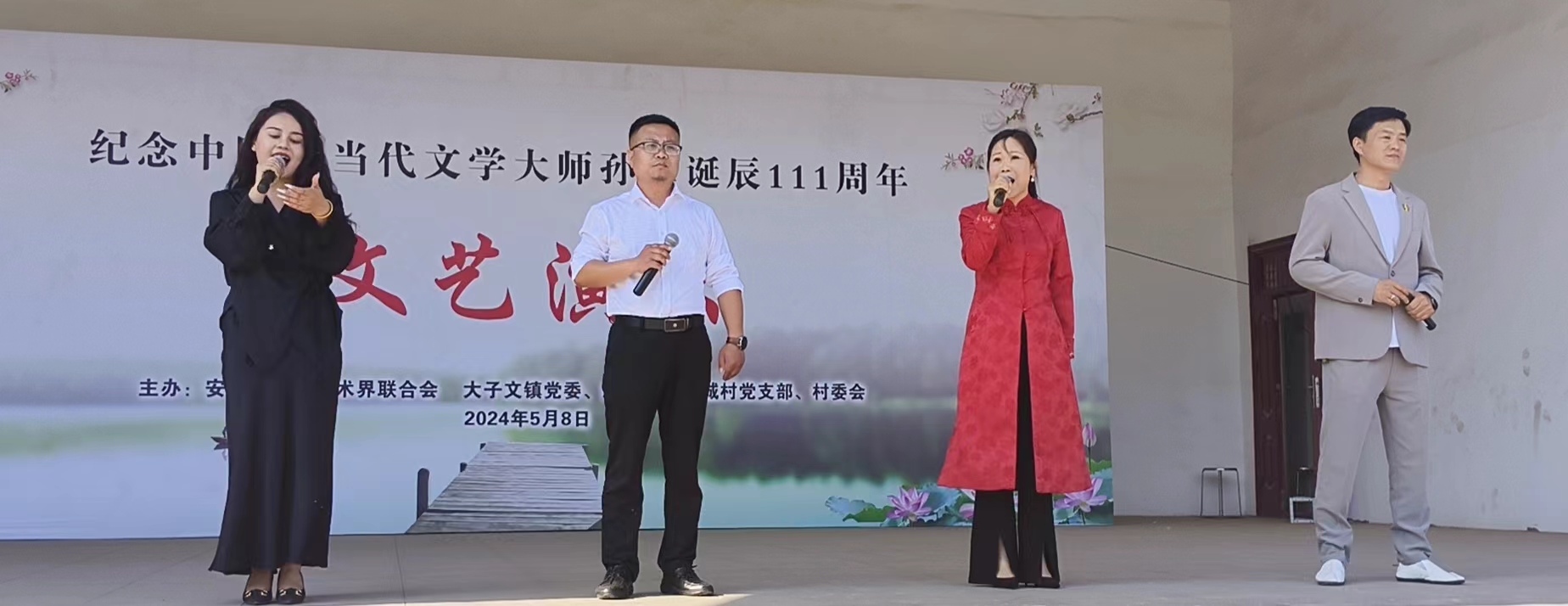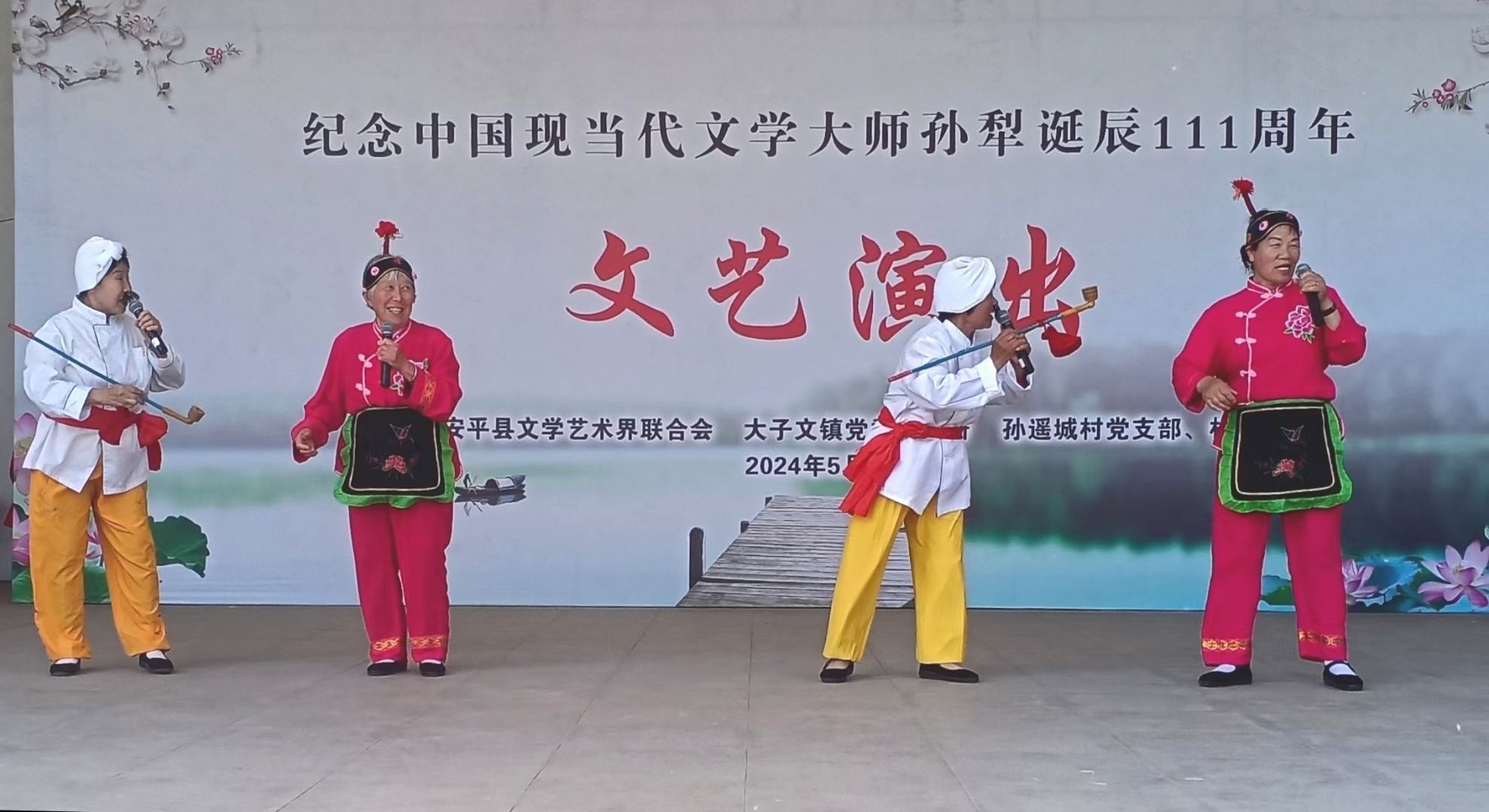 “常常的想起你,我的鄉親孫犁……”,5月8日下午,孫犁故里——安平縣孫遙城村文化廣場蕓夫舞臺歌聲悠揚,舞姿翩翩,紀念孫犁誕辰111周年文藝演出在這里隆重舉行。