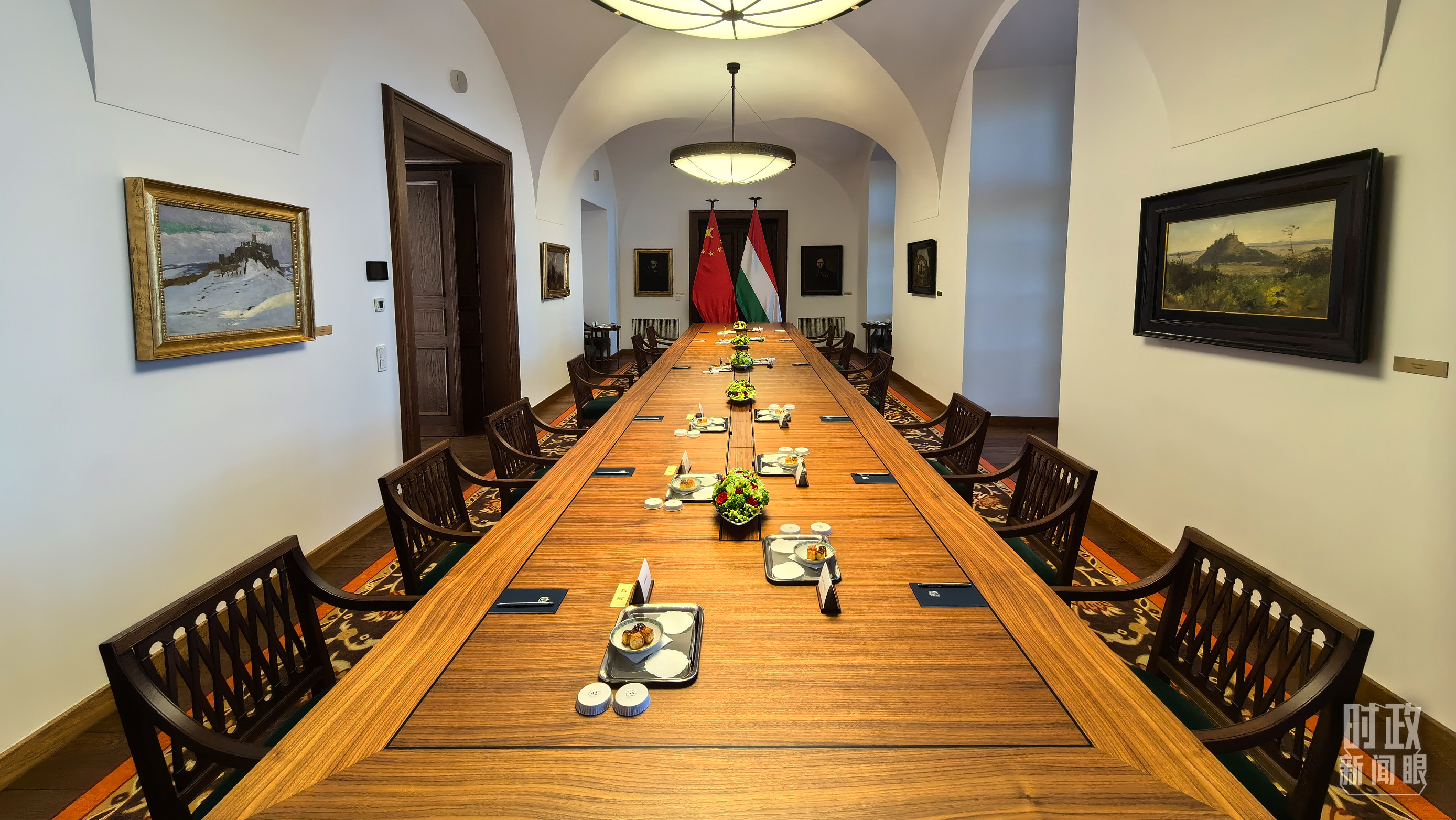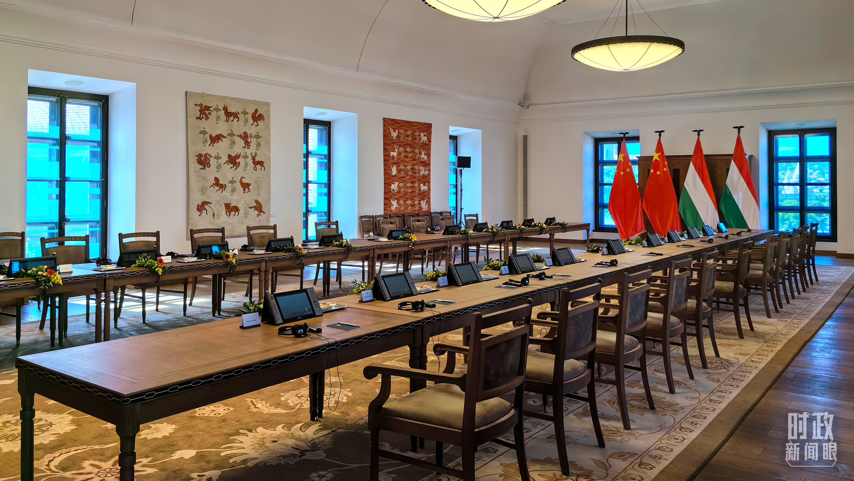 △習主席和歐爾班總理在這里舉行小范圍會見。這是會見開始前的現場。(總臺央視記者周志國拍攝)