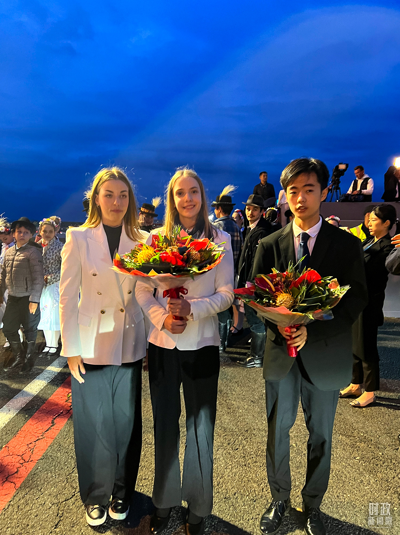 △歡迎儀式前,舒尤克總統夫婦和歐爾班總理夫婦在習主席下車處提前等候,熱情迎接。(總臺國廣記者李晉拍攝)