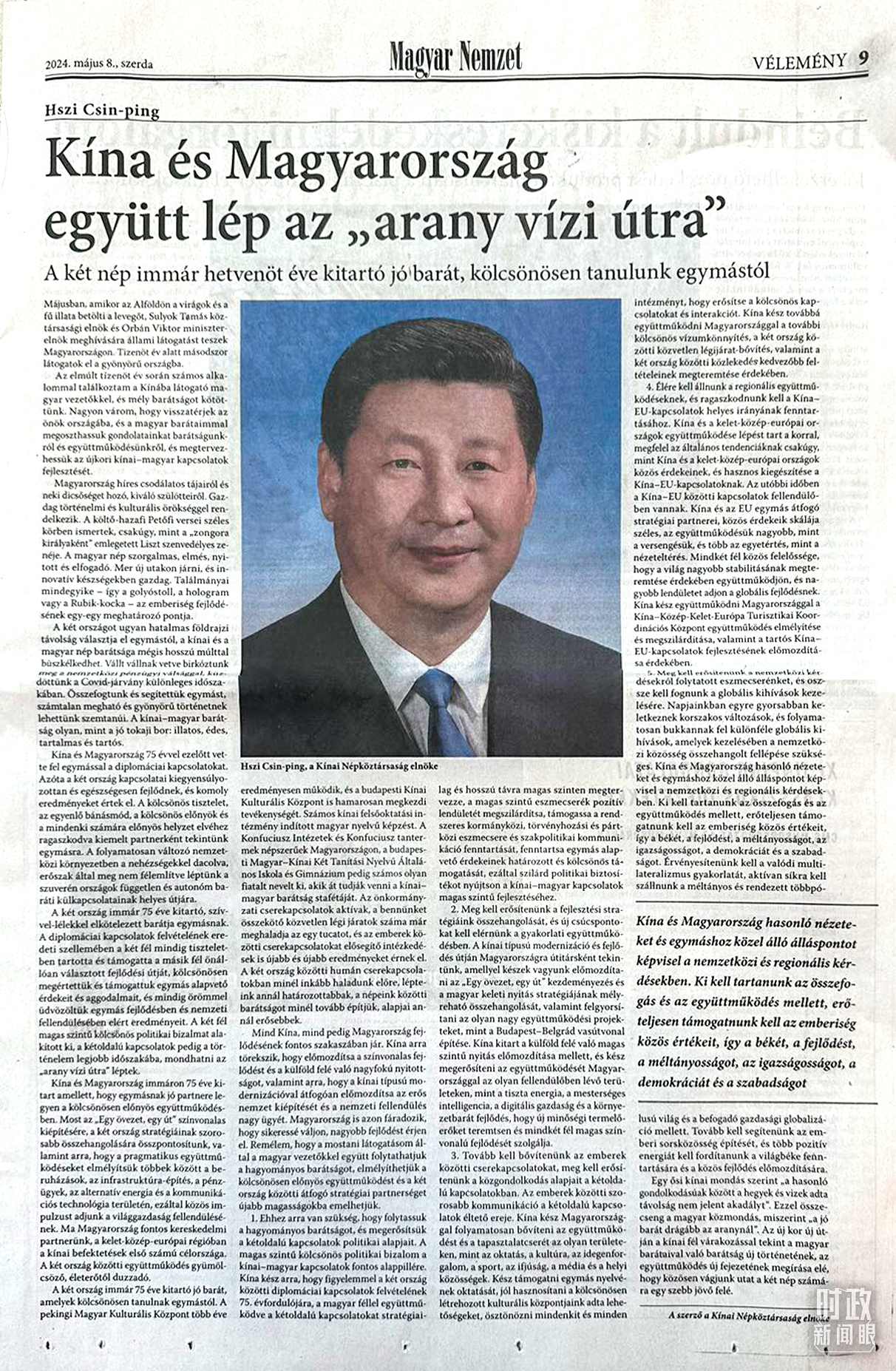 △習主席在匈牙利《匈牙利民族報》發表的署名文章。(總臺記者沃龍拍攝)