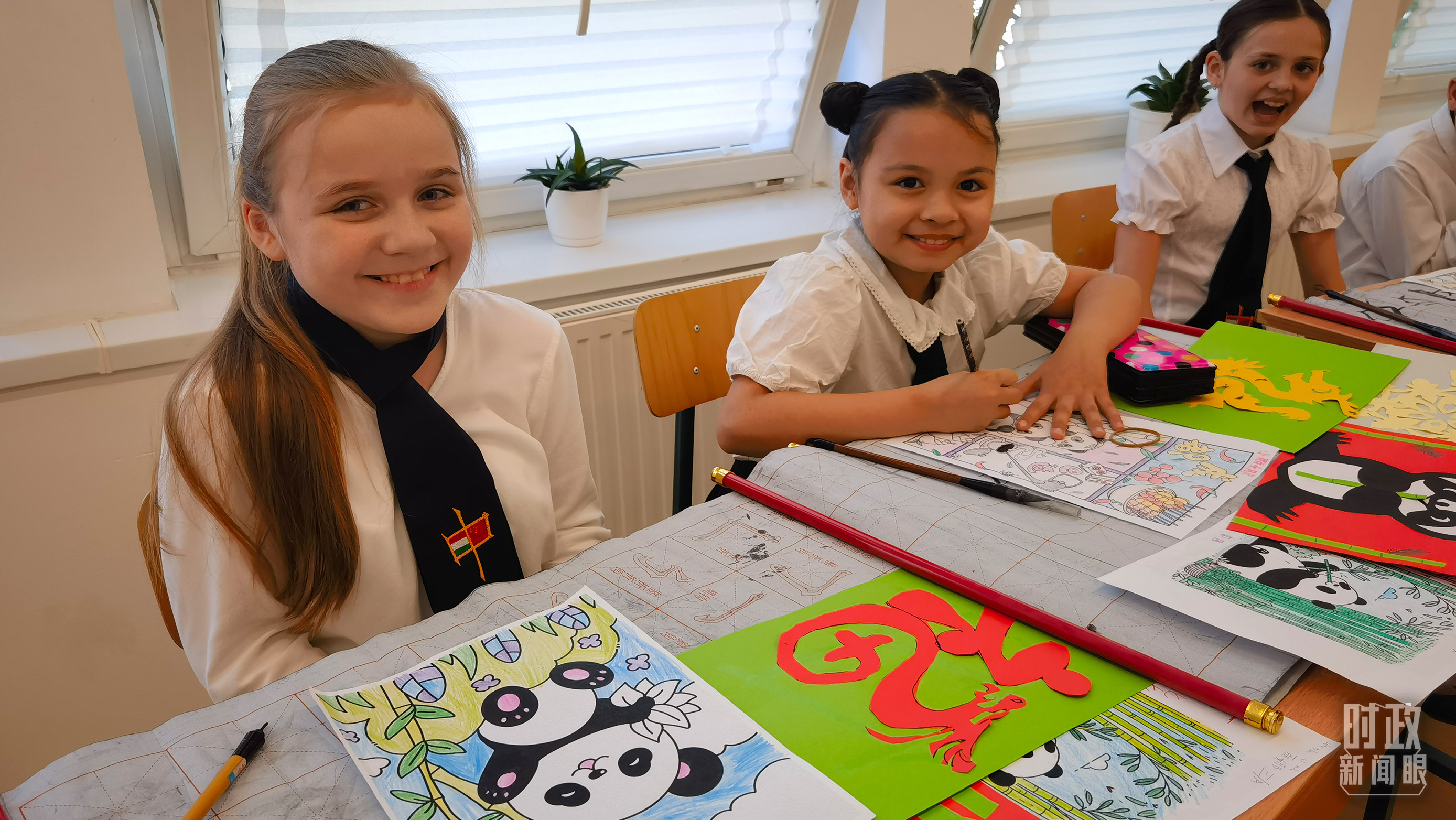 △匈中雙語學校中國傳統文化課堂上的孩子們。(總臺央視記者凌楓拍攝)