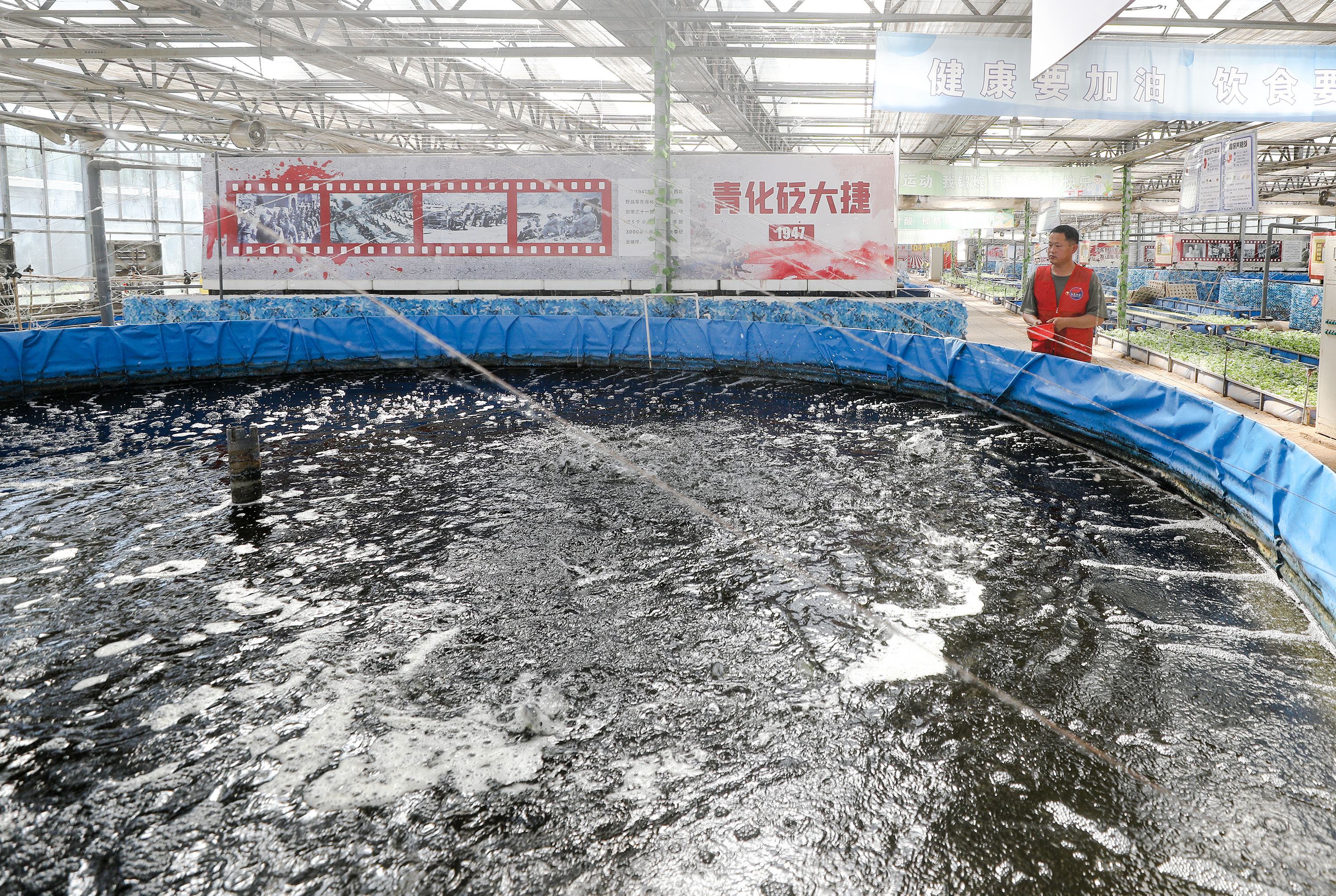 2022年,退役軍人張建輝通過招商將“魚菜共生”項(xiàng)目帶到景縣漁耕本草軍創(chuàng)谷落地。目前,該公司工廠化多功能種養(yǎng)基地每年可生產(chǎn)7茬共50萬斤無公害芹菜和兩茬共70萬斤凈水生態(tài)鱸魚,可實(shí)現(xiàn)銷售收入2000萬元。相對于傳統(tǒng)農(nóng)業(yè)模式,“魚菜共生”是一種新型復(fù)合耕作體系,是“養(yǎng)魚不換水、防控不用藥、種菜不施肥”的特色種、養(yǎng)一體的生態(tài)高效農(nóng)業(yè)新樣板,通過建立“魚肥水——菜凈水——水養(yǎng)肥”的生態(tài)循環(huán)系統(tǒng),實(shí)現(xiàn)了生態(tài)平衡,不僅節(jié)水、節(jié)肥、節(jié)約生產(chǎn)成本,還能收獲健康鮮美的魚類、綠色環(huán)保的蔬菜。