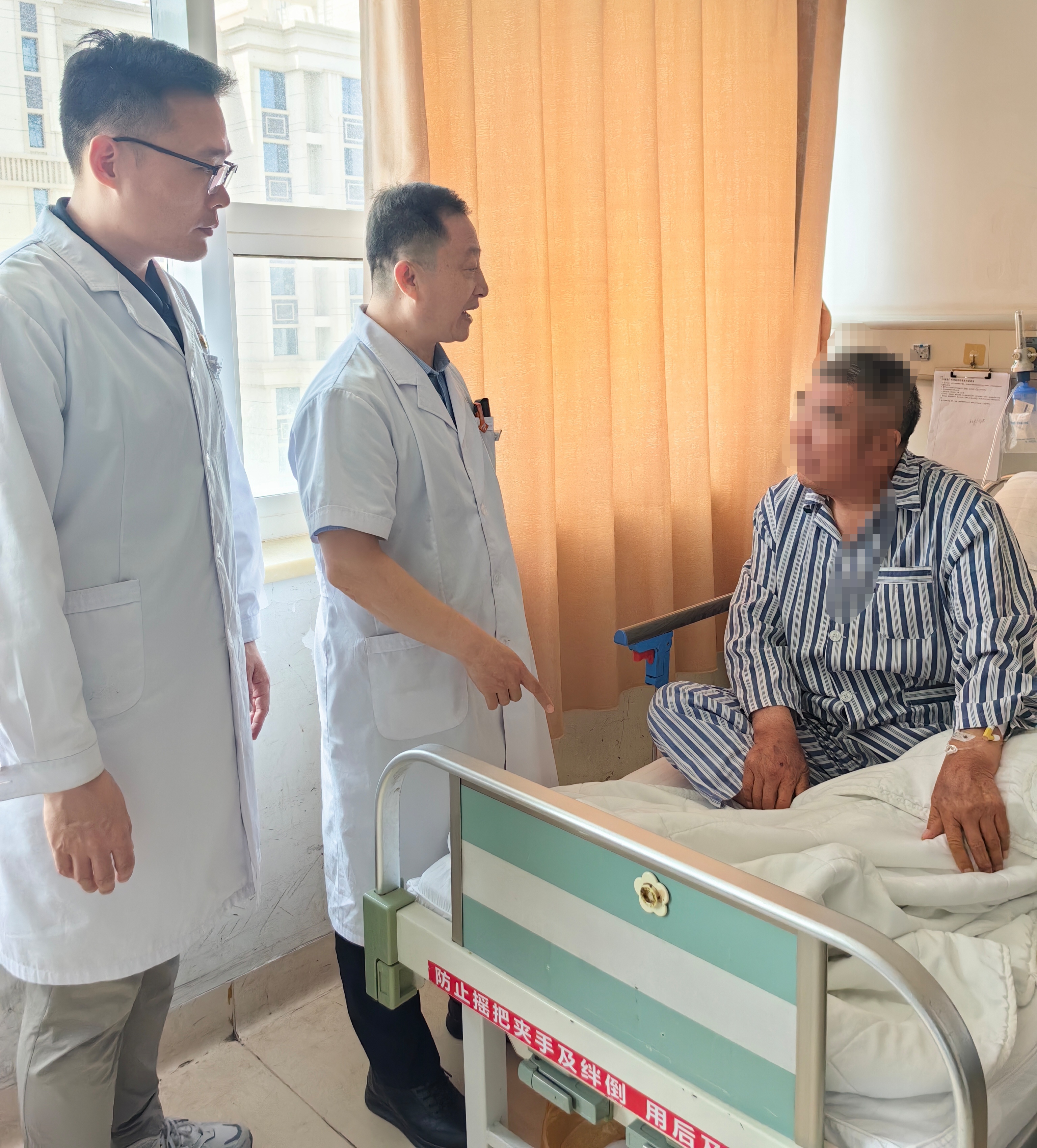 衡水市人民醫院(哈勵遜國際和平醫院)神經外三科(腦血管病區)主任相毅與張明哲就術后康復,給予王老先生指導。