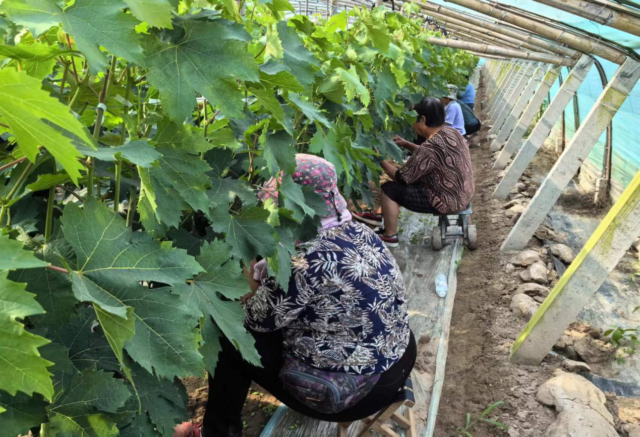 該村黨支部書記介紹,本村有日光溫室95個、設施大棚275個。今年開春以來,由于氣溫持續上升,設施大棚內的葡萄生長迅速,疏果工作集中爆發。一時間,工人大量短缺。村里利用“零工超市”發布信息,面向周邊村鎮招聘疏果工人,收到了良好效果:每天有超過100余名工人,到村里從事疏果作業,這種情形已持續近一個月,大大緩解了葡萄種植戶們的用工問題。