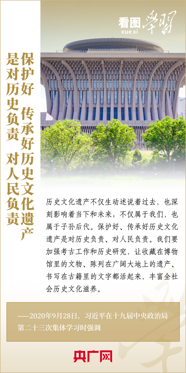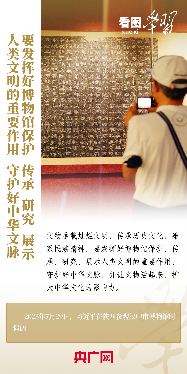 “一座博物館就是一所大學(xué)校”“博物館很重要,我從小就愛看博物館,小時(shí)候北京的博物館我差不多都看過了”“博物館建設(shè)要更完善、更成體系,同時(shí)發(fā)揮好博物館的教育功能”……在國(guó)內(nèi)考察中,習(xí)近平總書記曾經(jīng)多次走進(jìn)當(dāng)?shù)夭┪镳^,了解館藏文物的收藏、保護(hù)、研究情況,對(duì)博物館建設(shè)和利用作出重要指示。一起來學(xué)習(xí)!