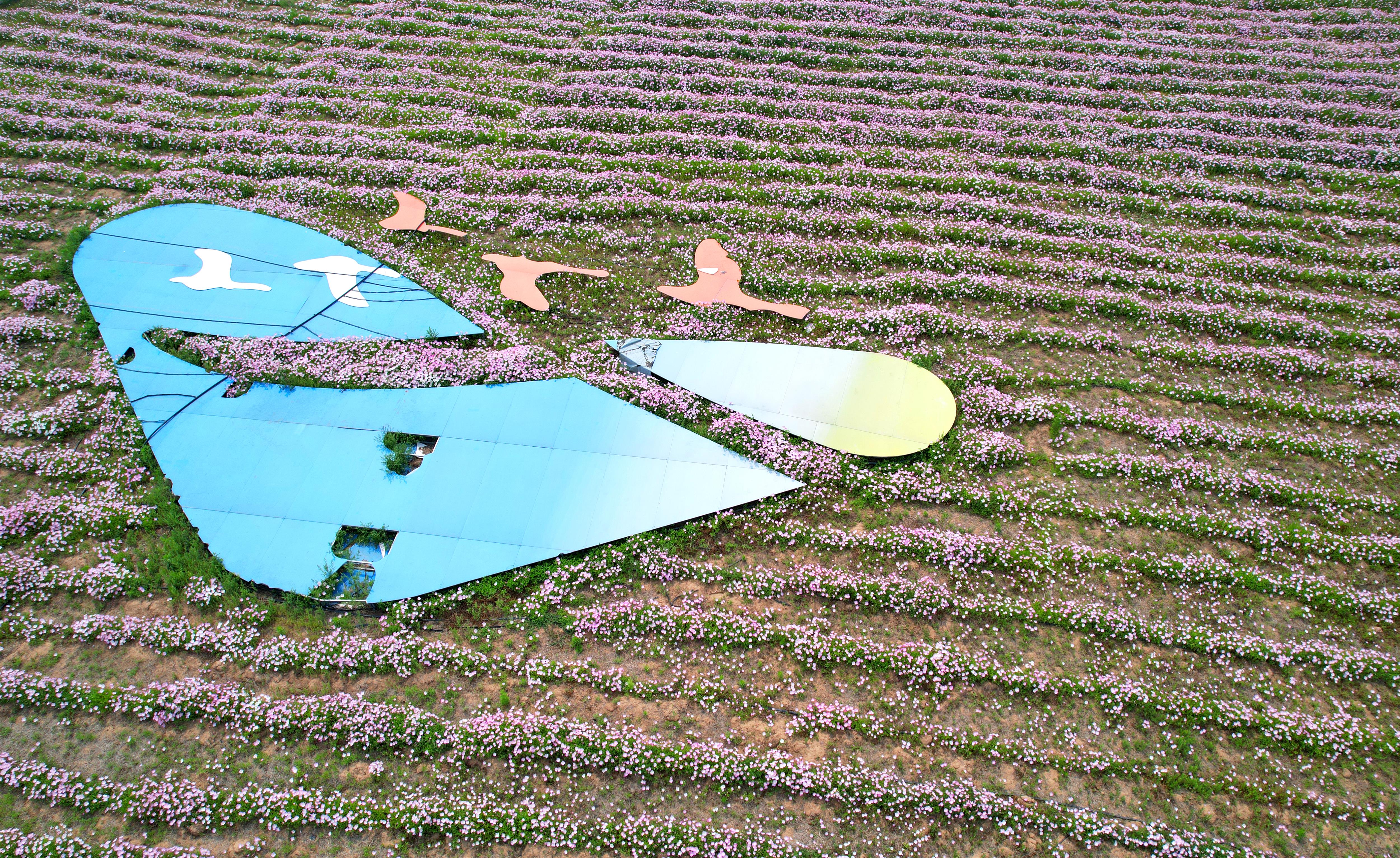 5月21日,在園博園內(nèi),游人如織,他們或牽手漫步花海,或乘坐觀光車(chē)穿梭,或與花兒合影留念,園區(qū)內(nèi)傳來(lái)陣陣歡聲笑語(yǔ)。沿著寬敞的主游路前行,映入眼簾的是一大片盛開(kāi)的月見(jiàn)草,花朵密密匝匝,簇簇相擁,宛如云霞。舉目望去,粉白色的花朵,在藍(lán)天映襯下,格外清新美麗;天空中不時(shí)有候鳥(niǎo)在頭頂飛旋,或盡展身姿,或放聲歌唱。花海舞動(dòng),鳥(niǎo)兒鳴叫,游客穿梭其間,猶如徜徉在童話世界。
