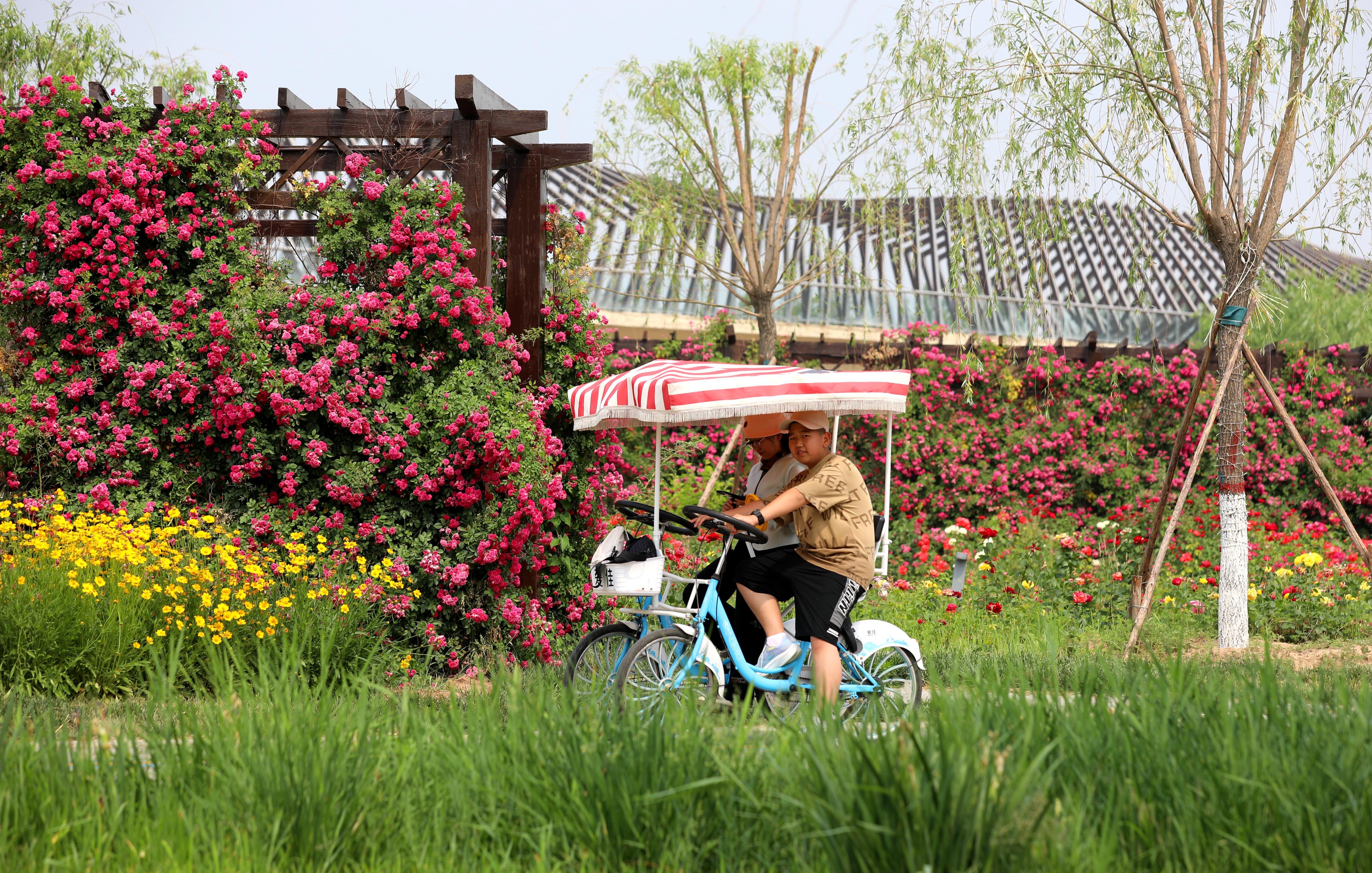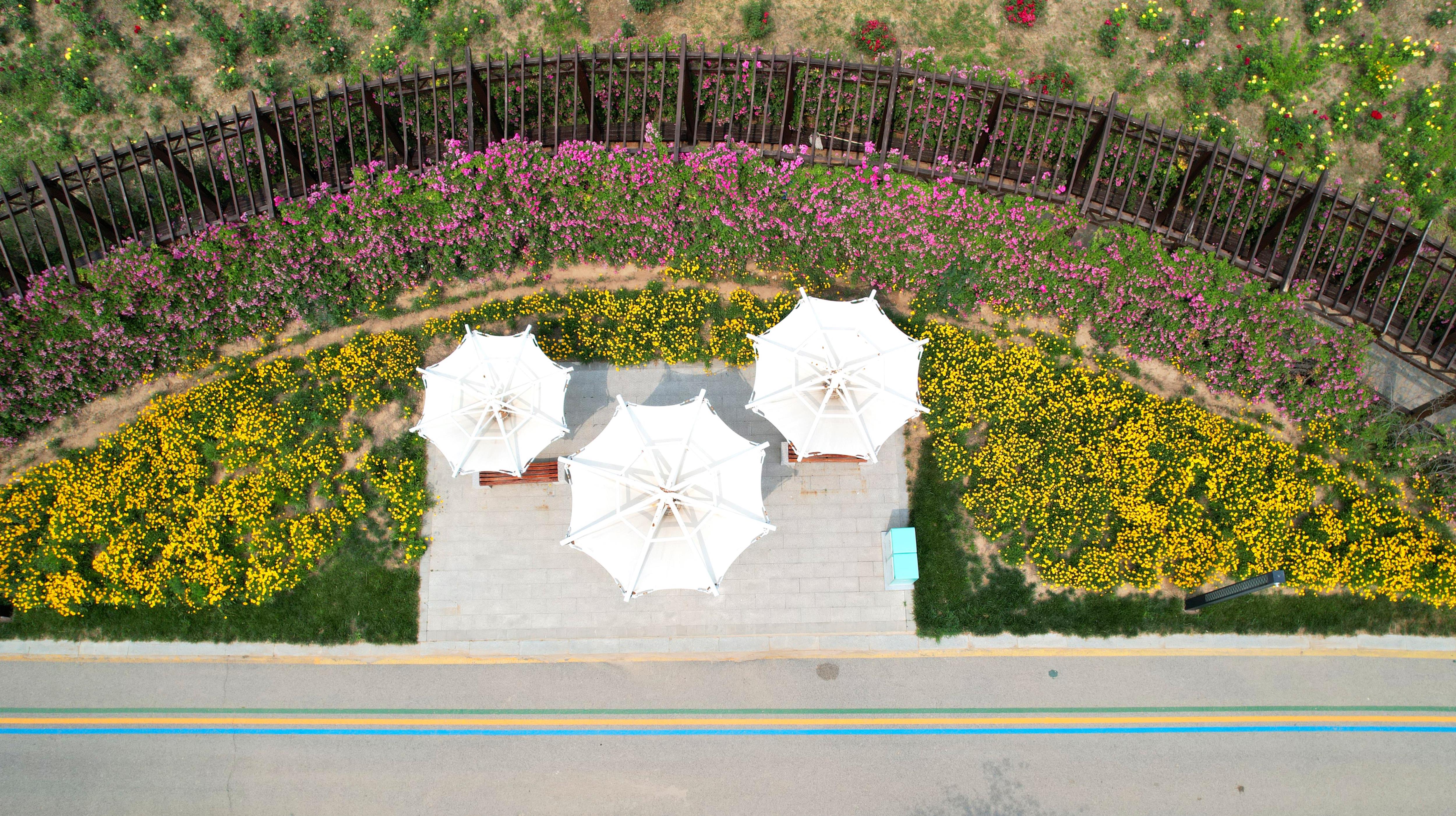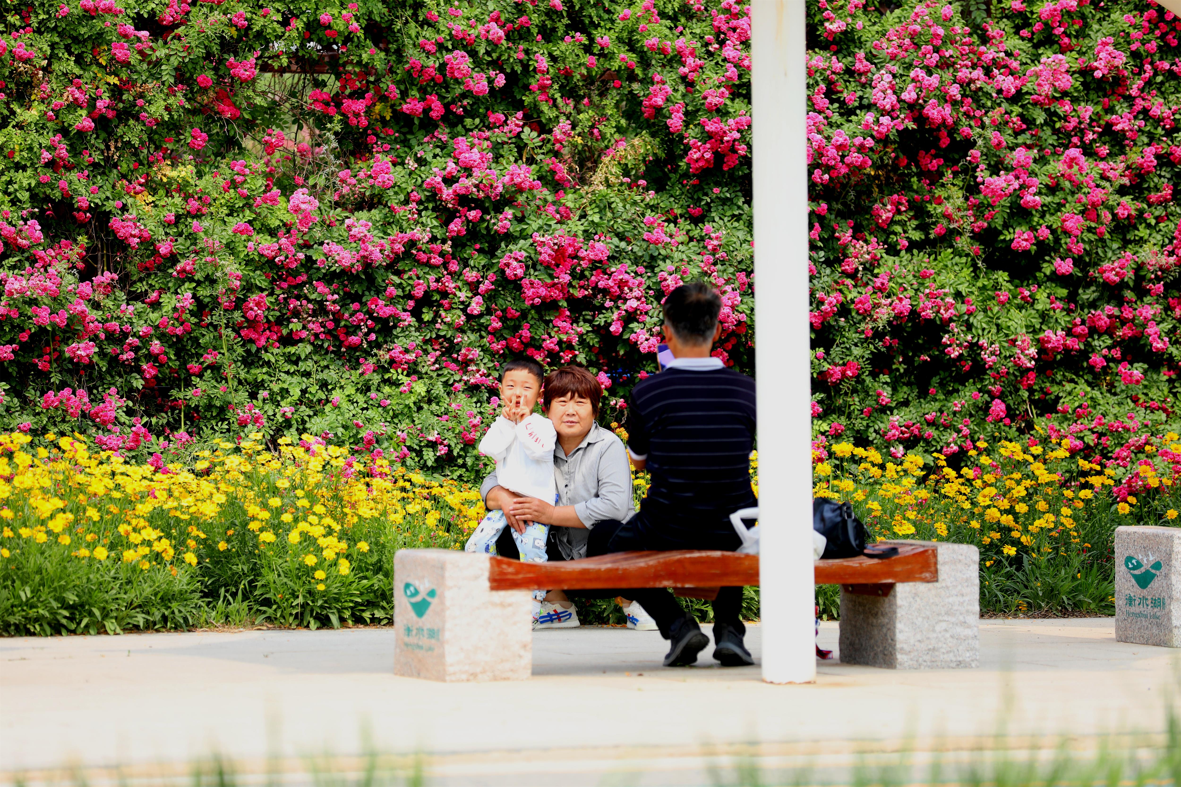一路前行,來(lái)到薔薇花廊處,微風(fēng)拂過(guò),花海像波浪一般涌動(dòng),沁人心脾的花香,層層疊疊花海讓人如癡如醉。來(lái)自石家莊的陳先生和愛(ài)人計(jì)劃自駕游到海邊,途徑此地,他說(shuō),在這里看到非常多的鳥(niǎo)類,空氣清新,四處飄香,環(huán)境好,一側(cè)是波光粼粼的湖水,一側(cè)是樹(shù)木蔥蘢及各色的花海,這樣的景色,讓人流連忘返。