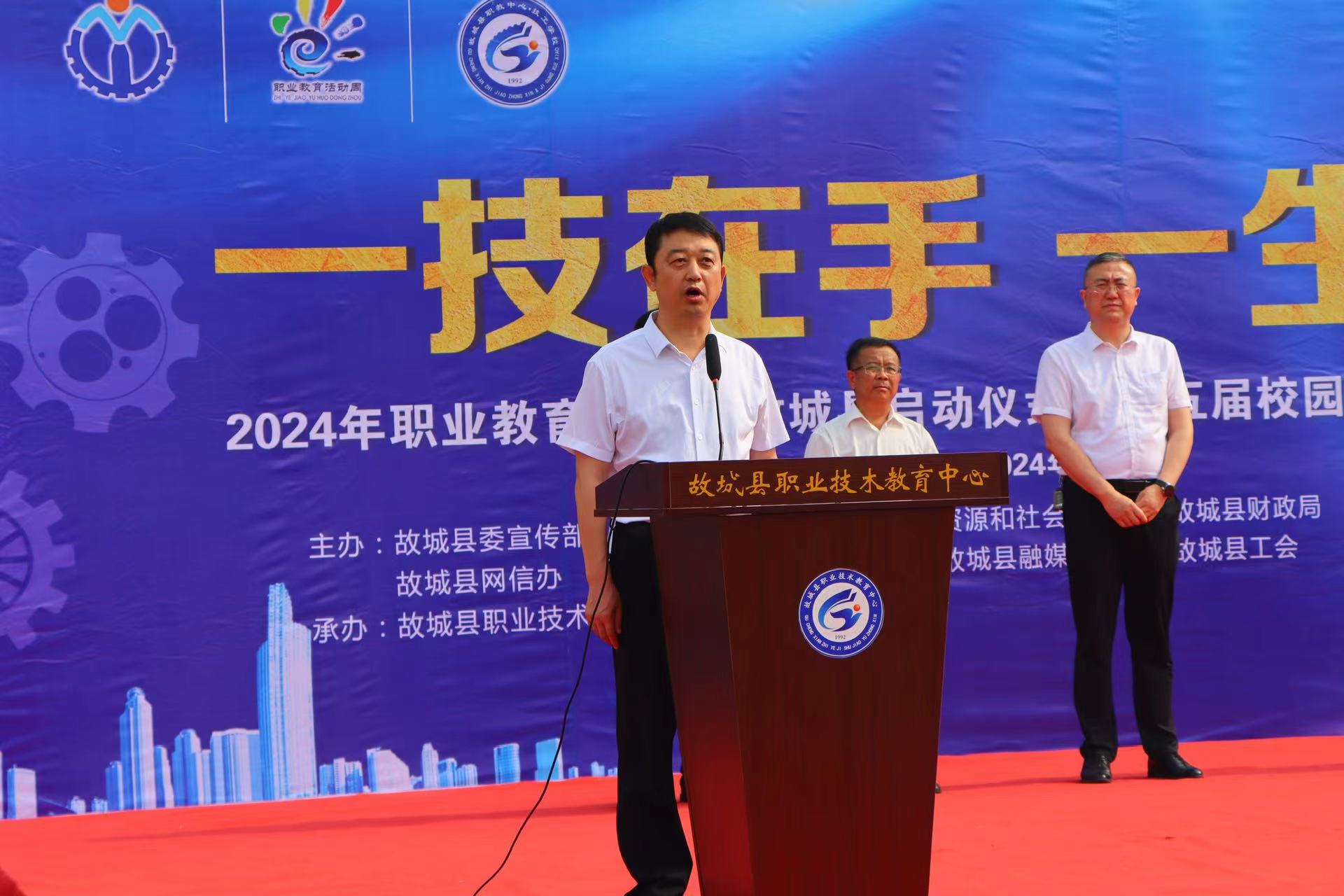 啟動儀式上,隨著紅色幕布緩緩揭開,故城縣職業技術教育中心·技工學校黨總支書記郝金杰致辭。他回顧了學校在黨建引領、教育創新、技能培養及心理健康服務等方面取得的顯著成就,并展望了未來學校將如何以技能人才為引擎,深化教學改革,推動社會培訓,強化校企合作,助力地方經濟蓬勃發展。