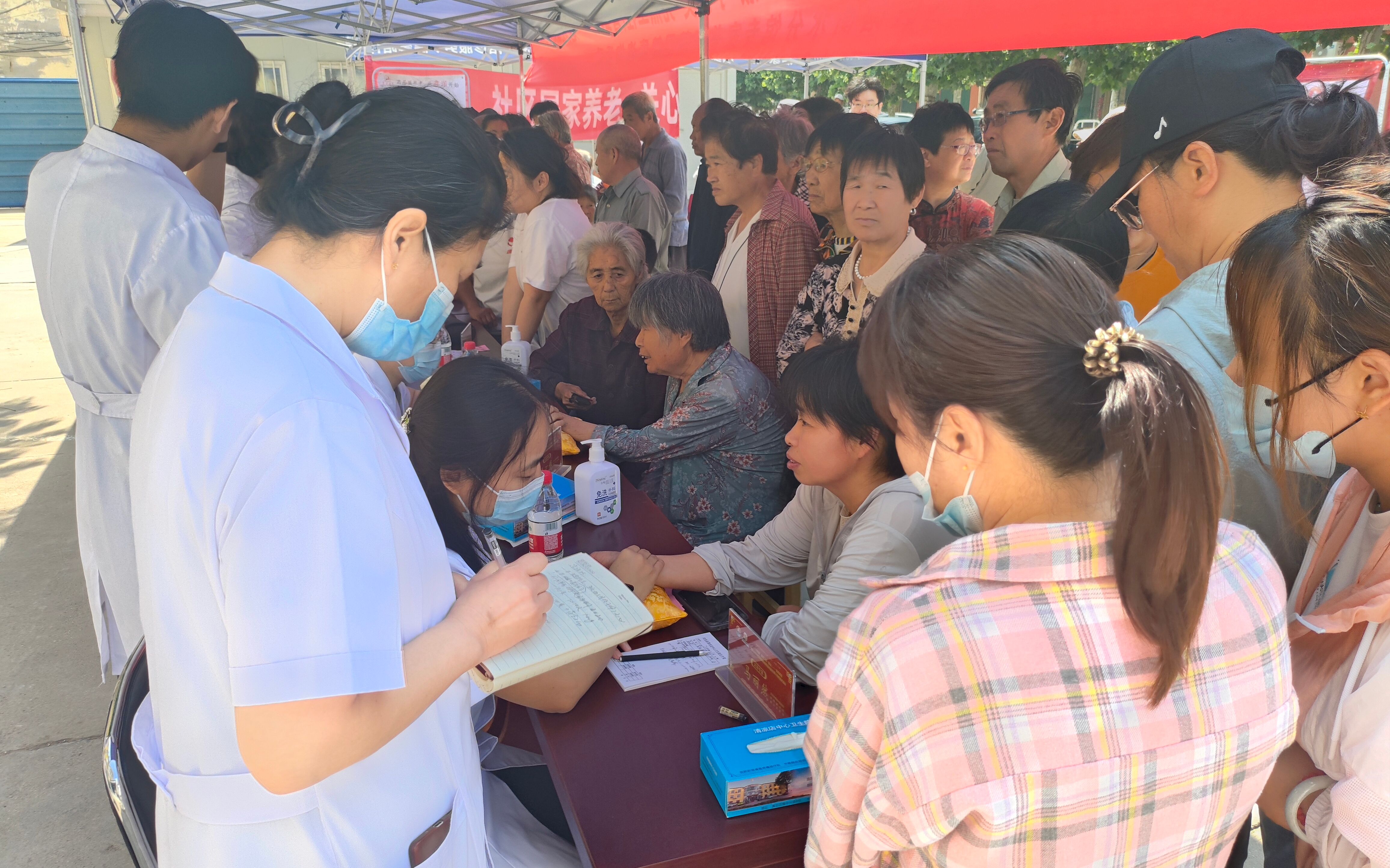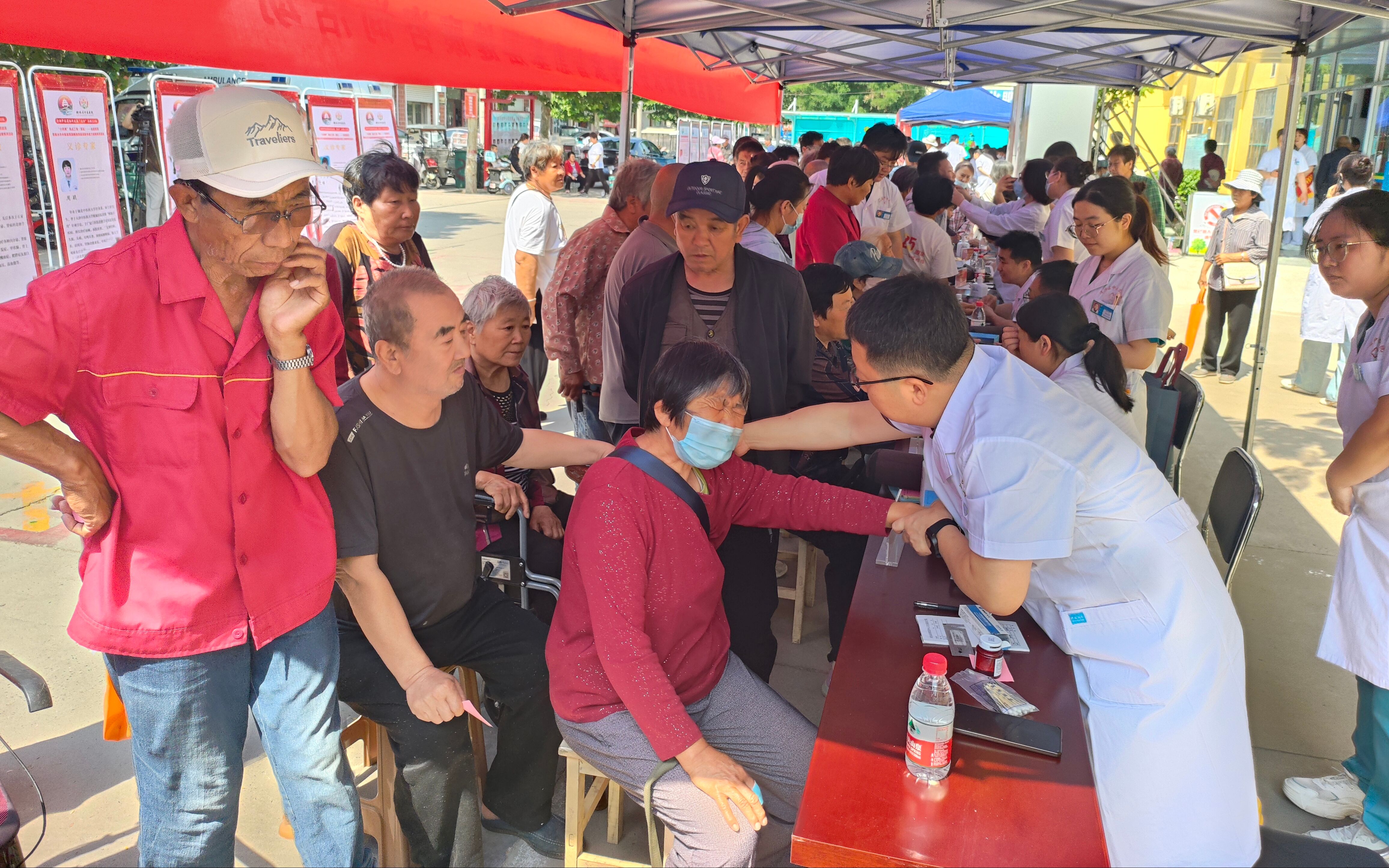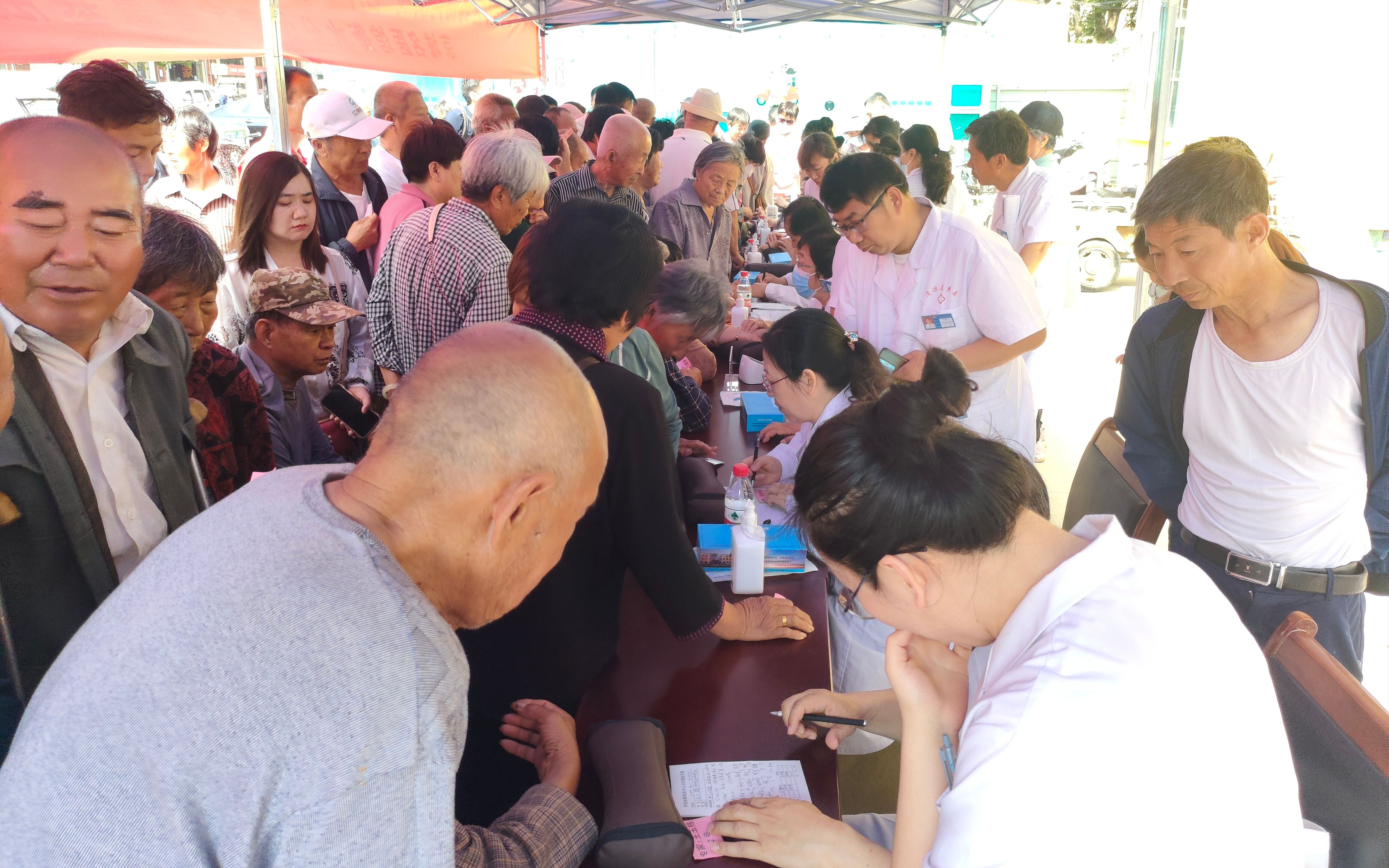 啟動儀式后,衡水市中醫醫院相關專家進行了中醫藥適宜技術現場教學,武邑縣部分鄉鎮衛生院、村醫等醫務人員參加了培訓,并就實際工作遇到的相關問題與有關專家進行了請教和深入探討。參訓人員紛紛表示,通過和專家老師的面對面交流,受益匪淺,深受啟發。與此同時,北京市鼓樓中醫醫院和京城名醫館衡水分館的近20名專家還在清涼店中心衛生院門前開展了普惠基層健康咨詢和義診活動,聞訊前來咨詢和就診的群眾絡繹不絕,不僅有本鎮村民,還有周邊鄉鎮甚至周邊縣的群眾不遠幾十里前來問診。在兩個多小時的義診過程中,專家們沒顧上喝一口水,通過望聞問切仔細為廣大群眾進行診斷,針對不同的體質提供個性化診療服務;對于拿著以往體檢單、化驗單和醫學影像片的患者,也給予了細致周詳的解答與治療建議。此次活動,惠及群眾200余人,讓更多人感受到中醫藥文化的獨特魅力。
