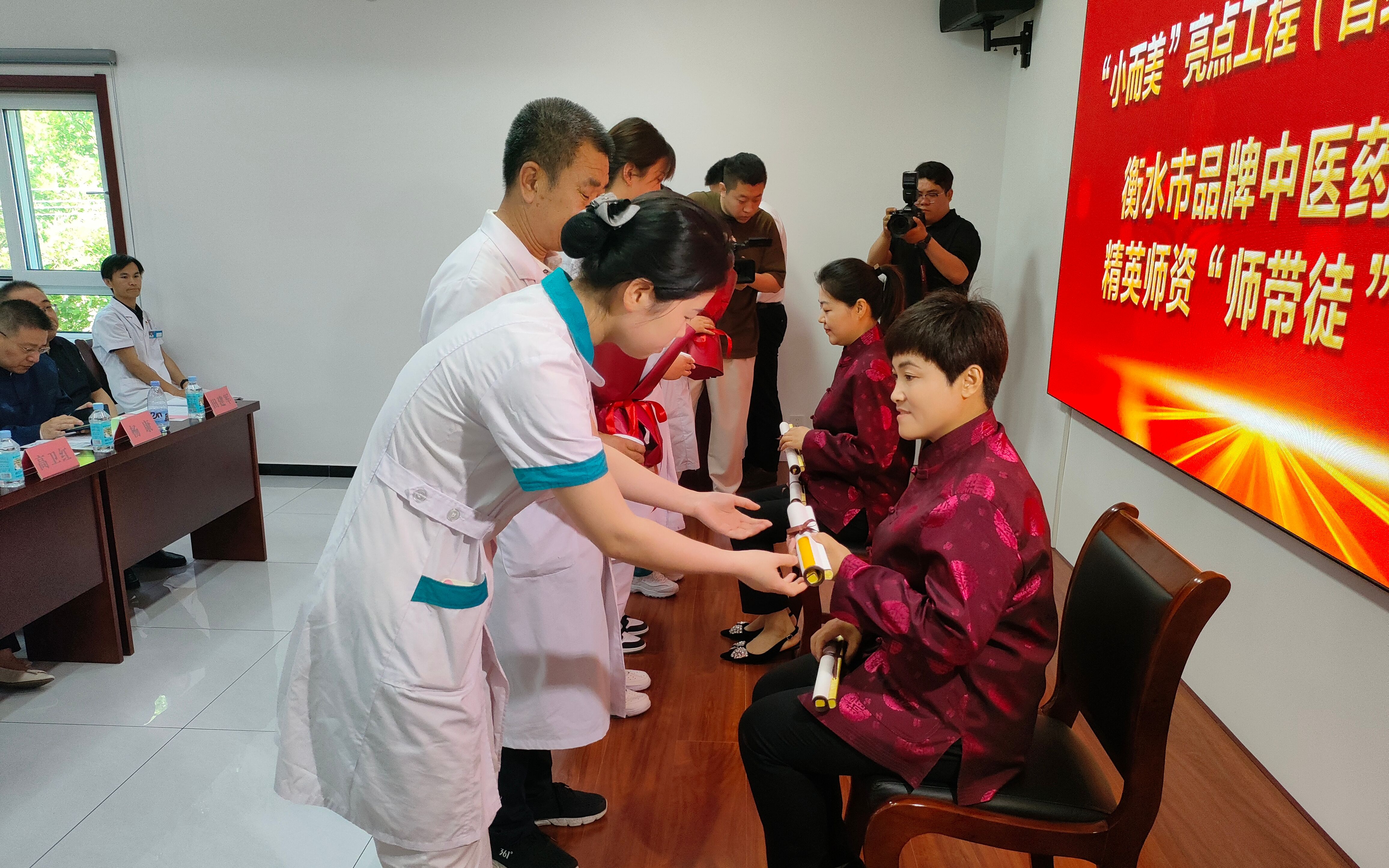 啟動儀式上,衡水市中醫醫院與武邑縣清涼店中心衛生院簽訂市中醫醫院旗艦醫院服務基層協議,衡水市衛健委和武邑縣委負責人共同為衡水品牌中醫藥適宜技術“十百千萬”行動推廣基地揭牌。同時,還舉行了衡水市品牌中醫藥適宜技術精英師資、市中醫醫院旗艦醫院(武邑)、京城名醫館名醫“師帶徒”拜師儀式。