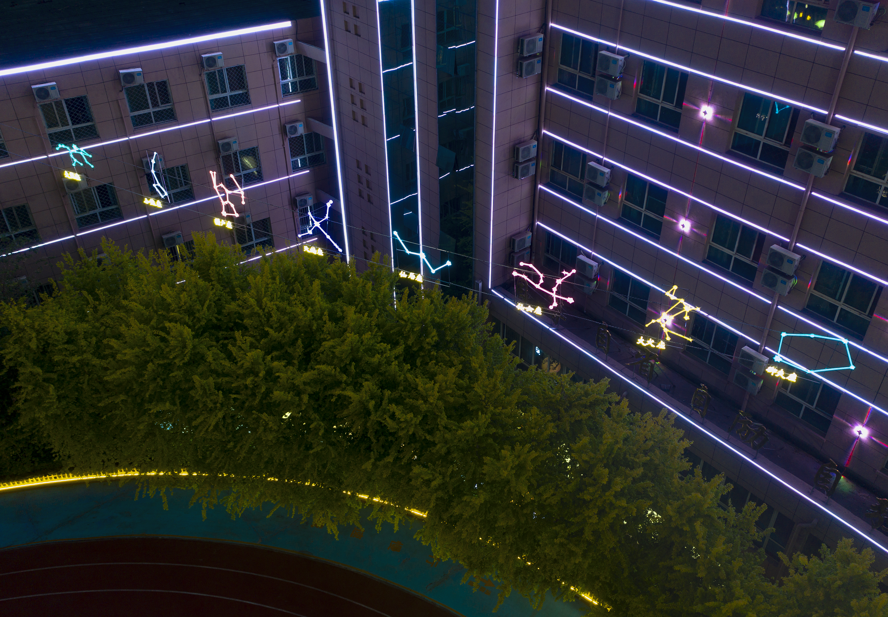 衡水市第十三中學在操場西北角設計了八大行星和八大星座文化景觀。八大行星文化,自東向西依次為水星、金星、地球、火星、木星、土星、天王星、海王星,與該校圍繞著學生全面發展提出的的“八個一”教育理論體系相契合;八大星座挑選的是一年四季中最具代表性的八個,象征著教學的八大基本原則。十三中學將天文科普與景觀相結合,不僅為學生提供了學習場所,更為校園增添了一道美麗的風景線。