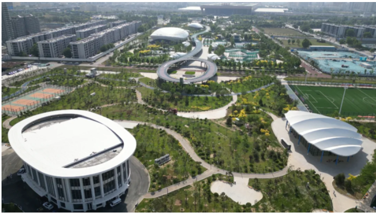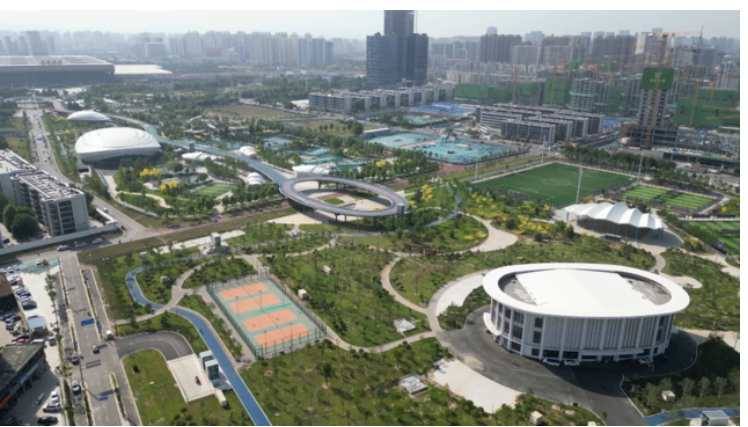 中央綠色體育公園Sports Party坐擁28.84萬平方米的廣闊天地,其中17萬平方米被郁郁蔥蔥的綠地覆蓋,綠意率高達(dá)60%,成為城市中的一片清新綠肺。