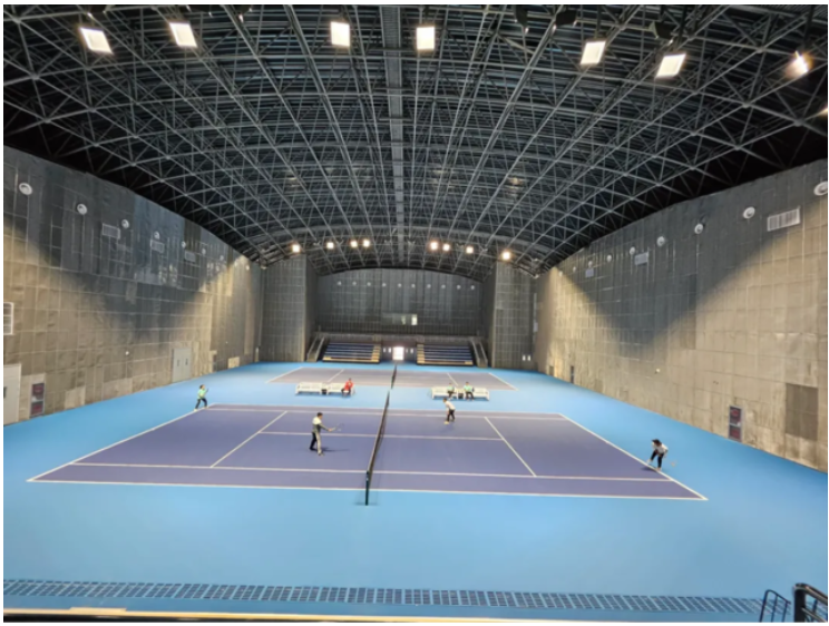 室內(nèi)網(wǎng)球館擁有可容納438名觀眾的看臺(tái),不僅能夠舉辦高水平丙級(jí)網(wǎng)球賽事,還能讓觀眾近距離感受網(wǎng)球運(yùn)動(dòng)的魅力,營造熱烈的觀賽氛圍。整個(gè)網(wǎng)球館的布局與設(shè)施,旨在為運(yùn)動(dòng)員、觀眾及工作人員創(chuàng)造一個(gè)高效、專業(yè)且充滿活力的運(yùn)動(dòng)空間,推動(dòng)網(wǎng)球運(yùn)動(dòng)的發(fā)展,同時(shí)也成為城市體育文化和社交活動(dòng)的重要場所。