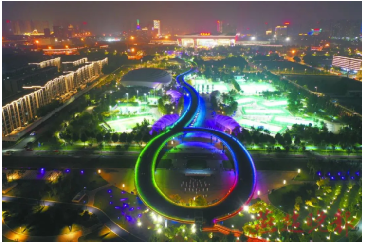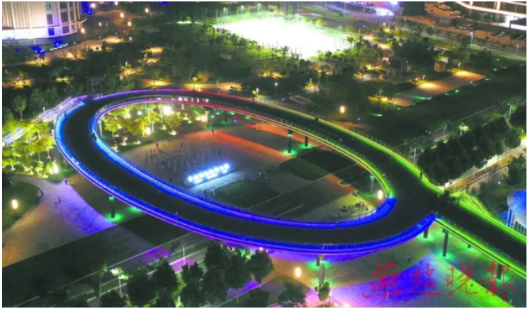 融合了休閑、運(yùn)動(dòng)與生態(tài)等諸多功能為一體的中央綠色體育公園,正憑借其絢爛的夜景,打造高鐵片區(qū)夜景名片。