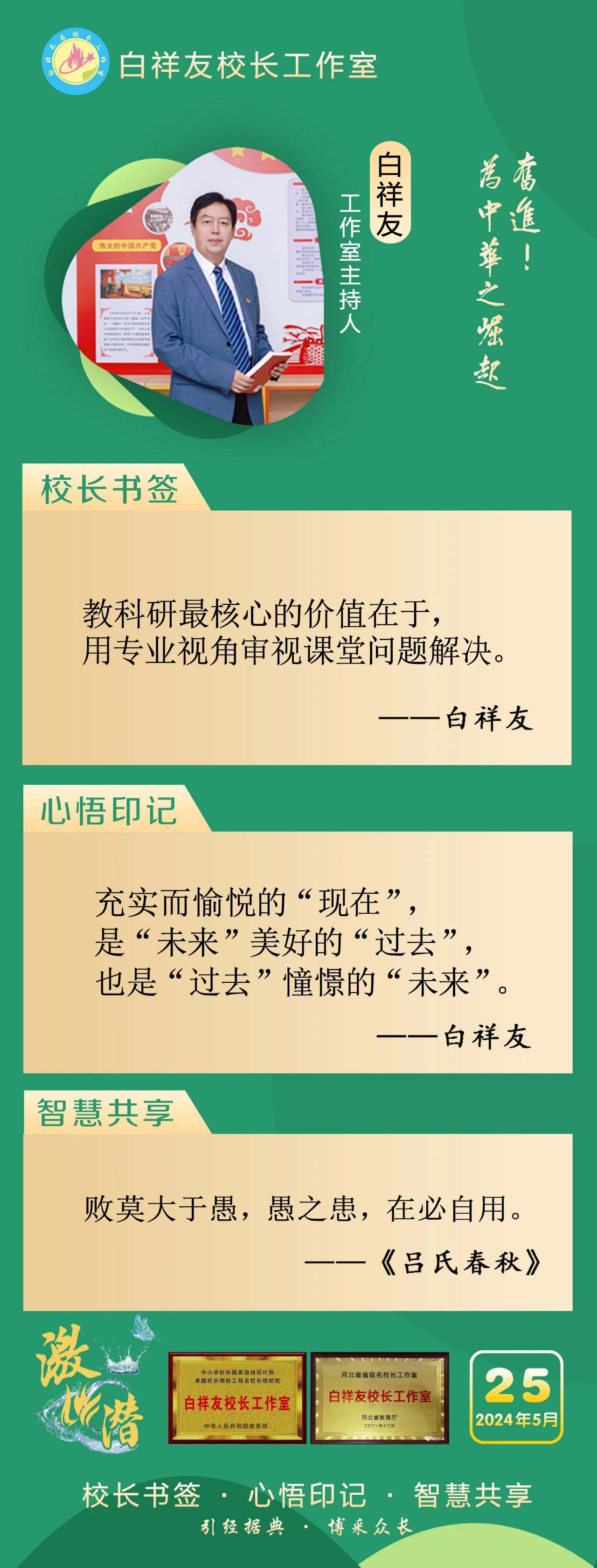 “白祥友校長工作室”成立于2019年4月,是教育部“國培計(jì)劃”中小學(xué)名校長領(lǐng)航工程、河北省首批名校長工作室,目前省內(nèi)外成員校20個(gè)。工作室堅(jiān)持“資源共享、智慧共融、互助共贏”理念,已成為思想碰撞的交流場,資源共享的品牌站,成果展示的輻射源。