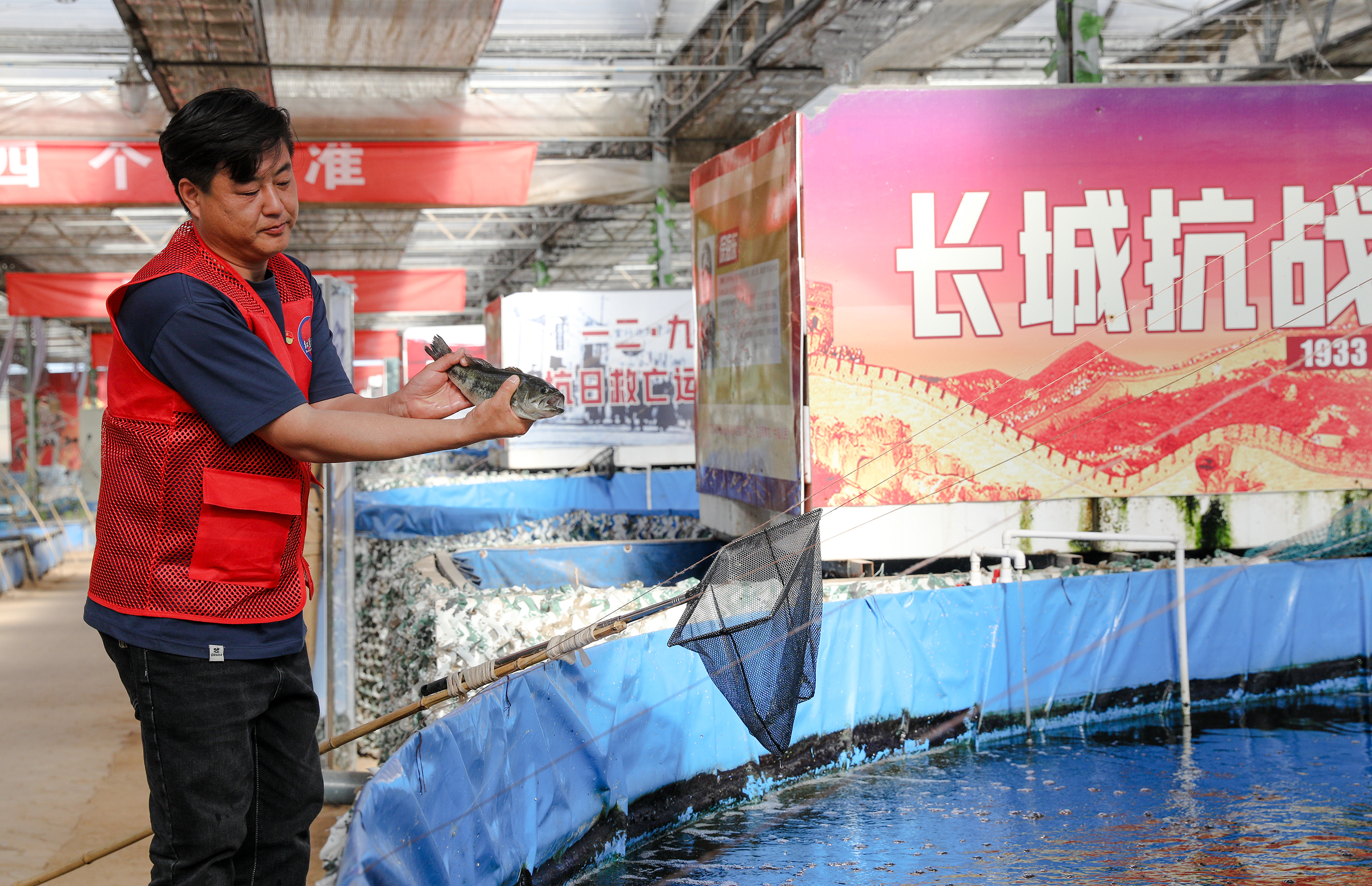 2022年,退役軍人張建輝通過招商來到景縣,看到了龍華鎮冬季閑置下來的設施大棚后,他就萌生了搞“魚菜共生”循環種養的想法。