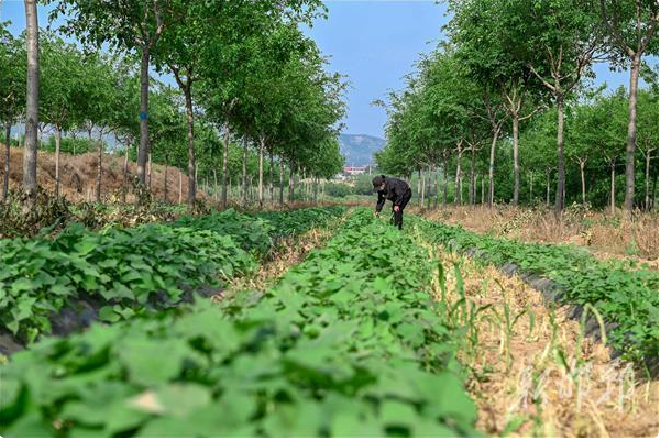 在峰峰礦區和村鎮南胡村的一處林地,4米高的流蘇樹苗一行行整齊排列,樹行之間林下套種低矮作物成為“新寵”。今年,該村在林下嘗試套種紅薯,讓林下地變身特產田。