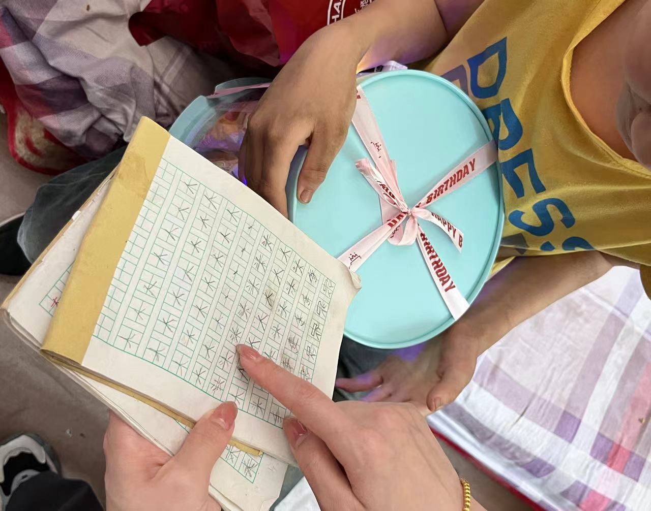 10歲的小海(化名)和11歲小航(化名)已經是大家的“老朋友”了。當走進愛畫畫的小海家時,他立刻展示了他的繪畫作品,“這個張著大嘴,有很尖牙齒的是霸王龍!阿姨你再看這個,這是我畫的坦克!”看到小海性格相較于年前變得開朗了不少,大家都替他感到高興。當走進小航家時,他向大家展示了他的十分工整的字,小航奶奶表示今年來小航的學習等各方面都有了一定的進步,她很是欣慰。