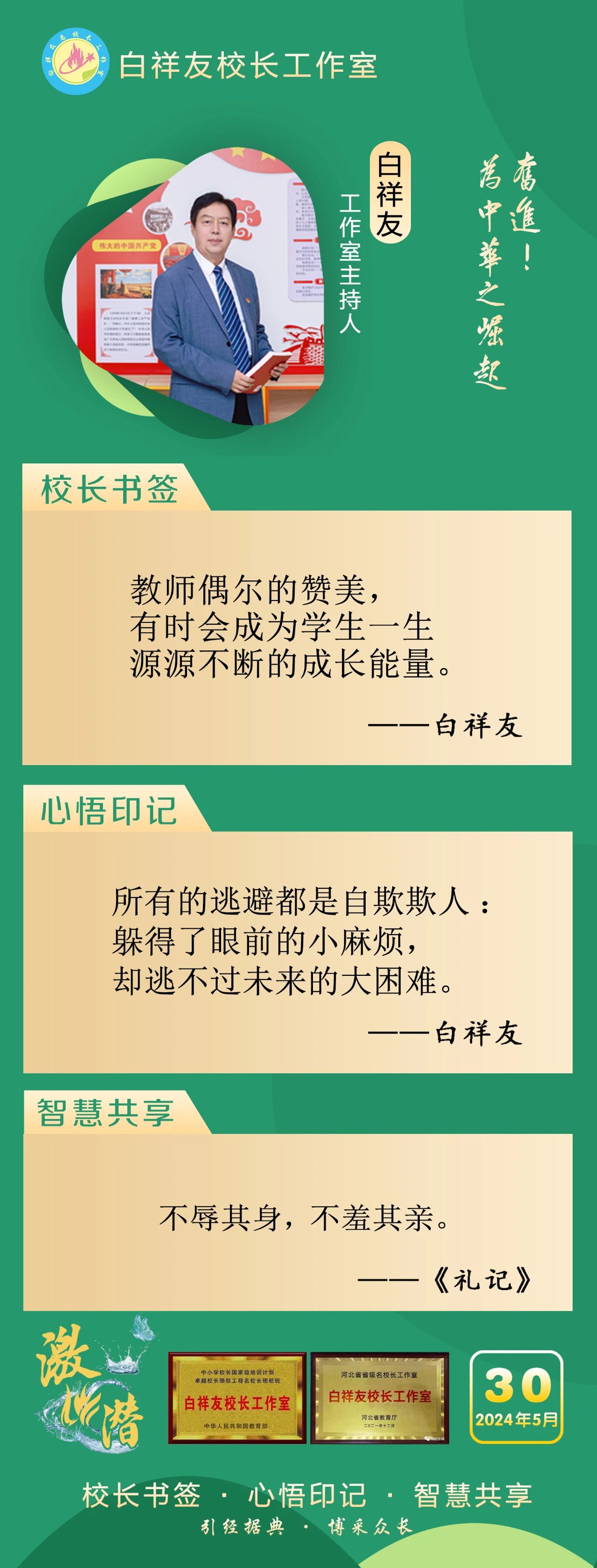 “白祥友校長(zhǎng)工作室”成立于2019年4月,是教育部“國(guó)培計(jì)劃”中小學(xué)名校長(zhǎng)領(lǐng)航工程、河北省首批名校長(zhǎng)工作室,目前省內(nèi)外成員校20個(gè)。工作室堅(jiān)持“資源共享、智慧共融、互助共贏”理念,已成為思想碰撞的交流場(chǎng),資源共享的品牌站,成果展示的輻射源。