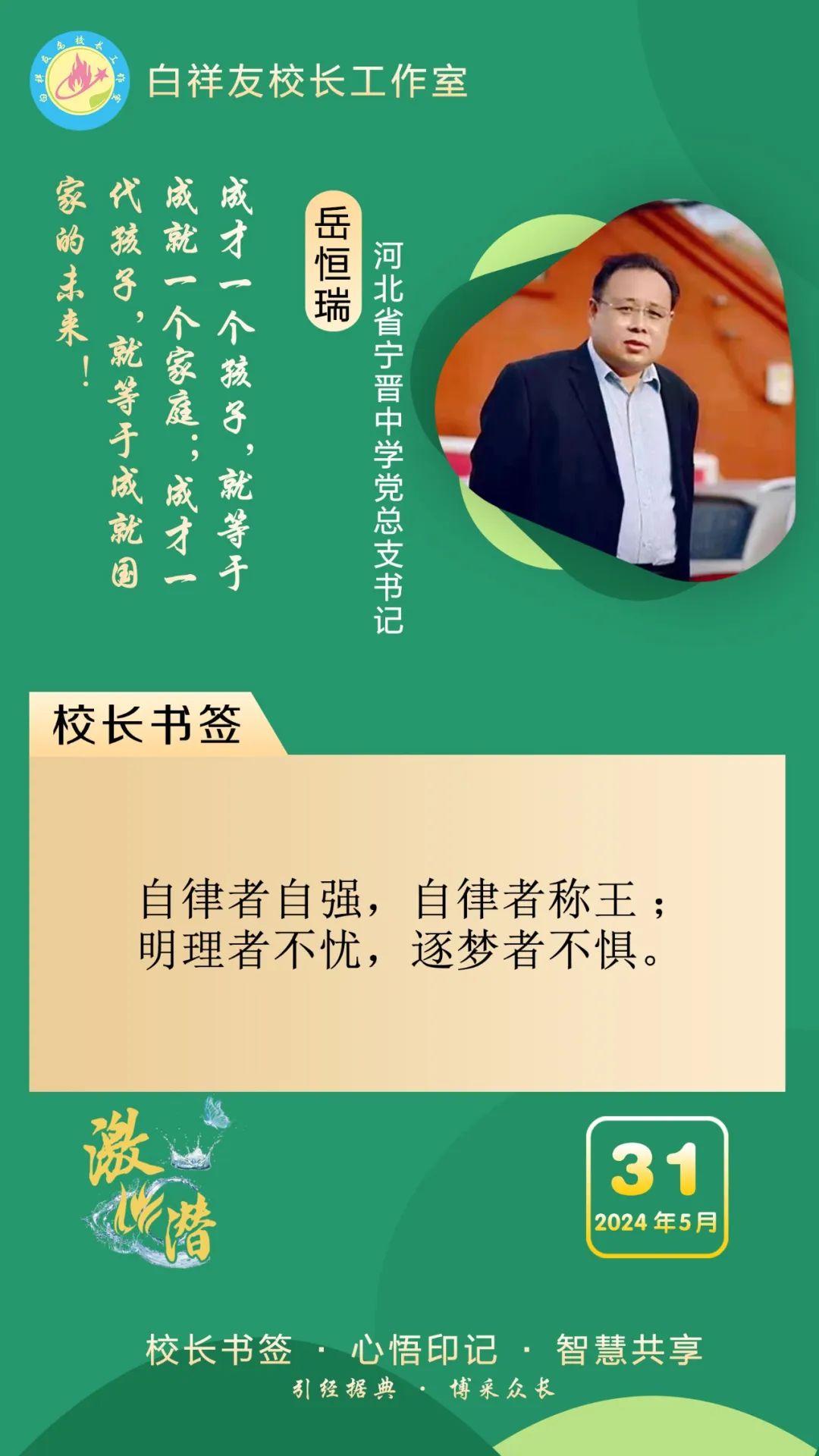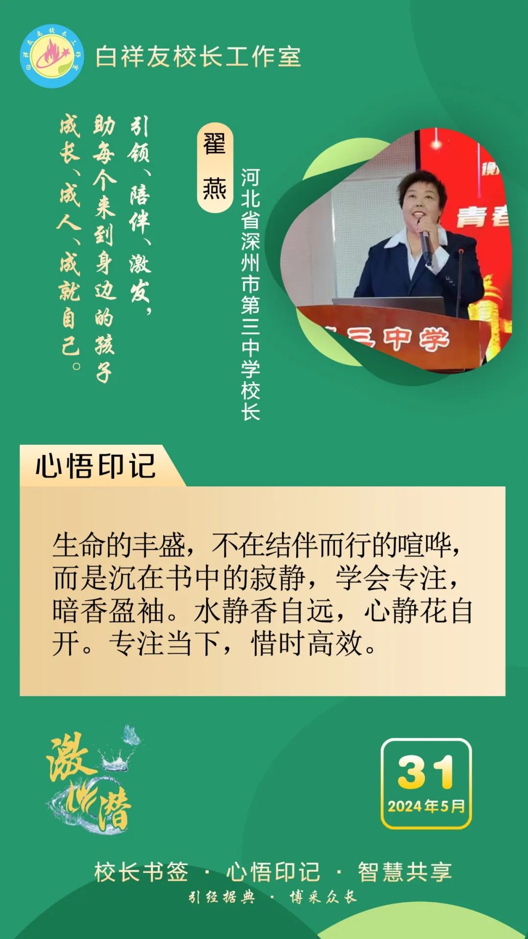 “白祥友校長工作室”成立于2019年4月,是教育部“國培計劃”中小學名校長領航工程、河北省首批名校長工作室,目前省內外成員校20個。工作室堅持“資源共享、智慧共融、互助共贏”理念,已成為思想碰撞的交流場,資源共享的品牌站,成果展示的輻射源。