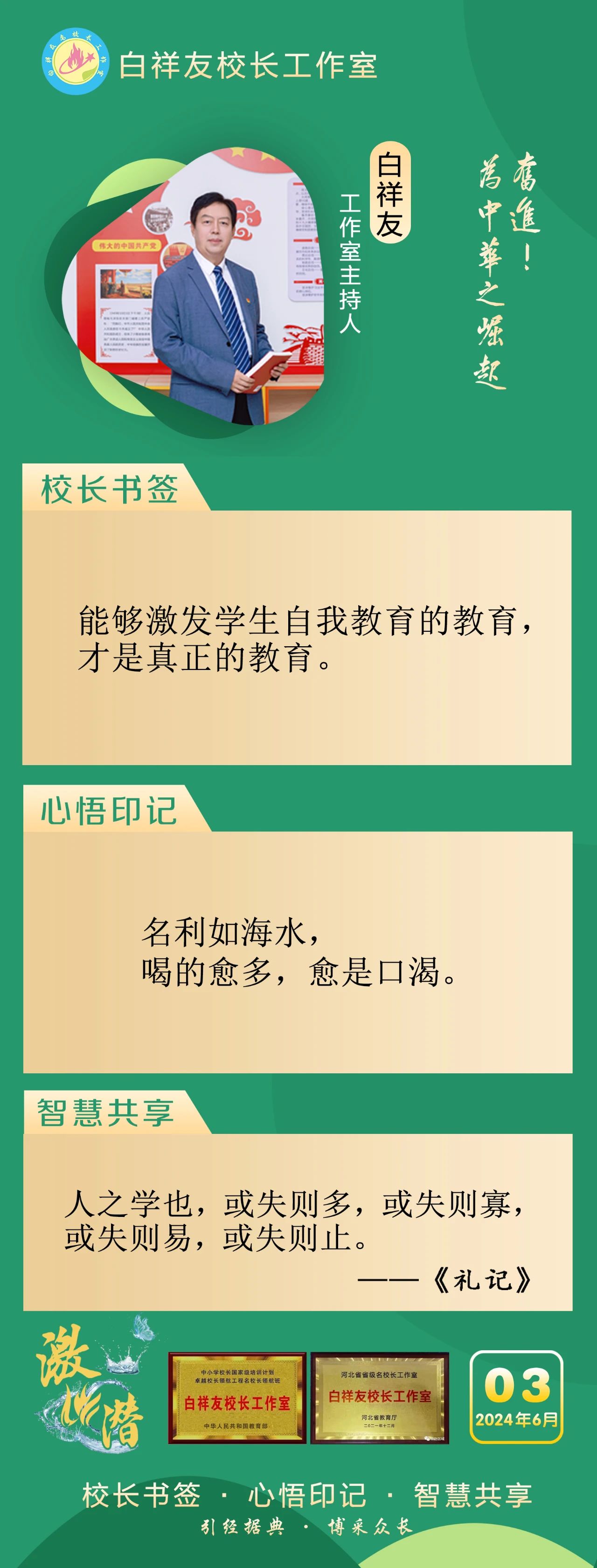 “白祥友校長工作室”成立于2019年4月,是教育部“國培計劃”中小學名校長領航工程、河北省首批名校長工作室,目前省內外成員校20個。工作室堅持“資源共享、智慧共融、互助共贏”理念,已成為思想碰撞的交流場,資源共享的品牌站,成果展示的輻射源。