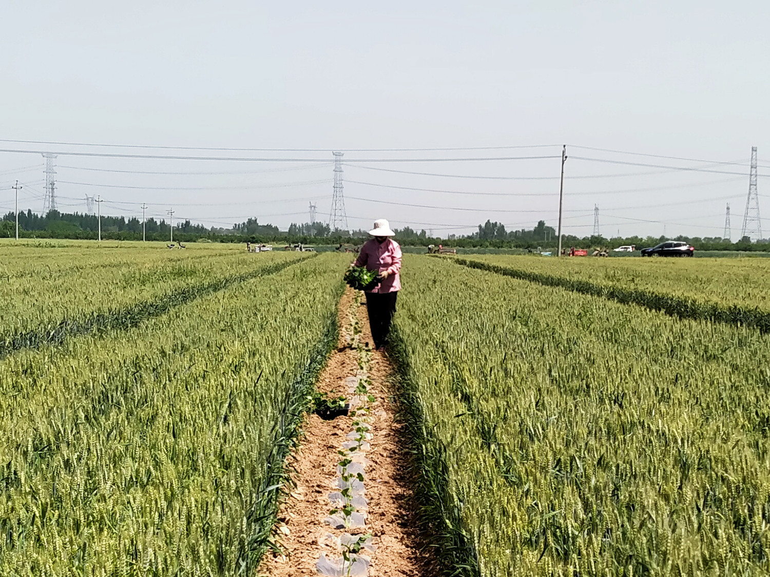 冀州區北漳淮鄉孔村的麥田里,鄉親們正在種植冬瓜。(資料圖)徐明霞 攝