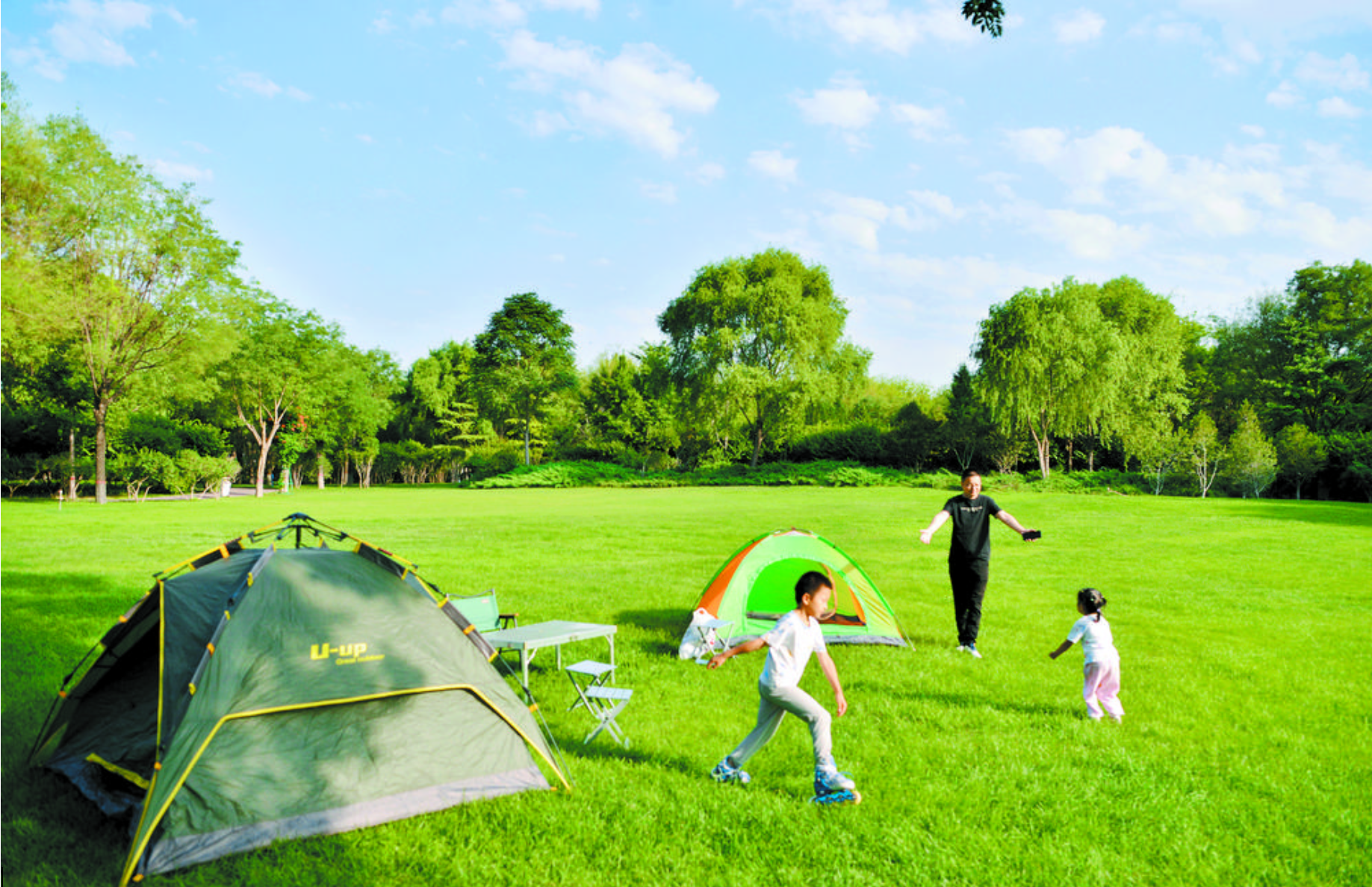 結束一天繁忙的工作后,準備一包美食,約上三五好友,在共享綠地上支一頂帳篷,泡一壺清茶,看一場露天電影,也足以消去焦慮和壓力。