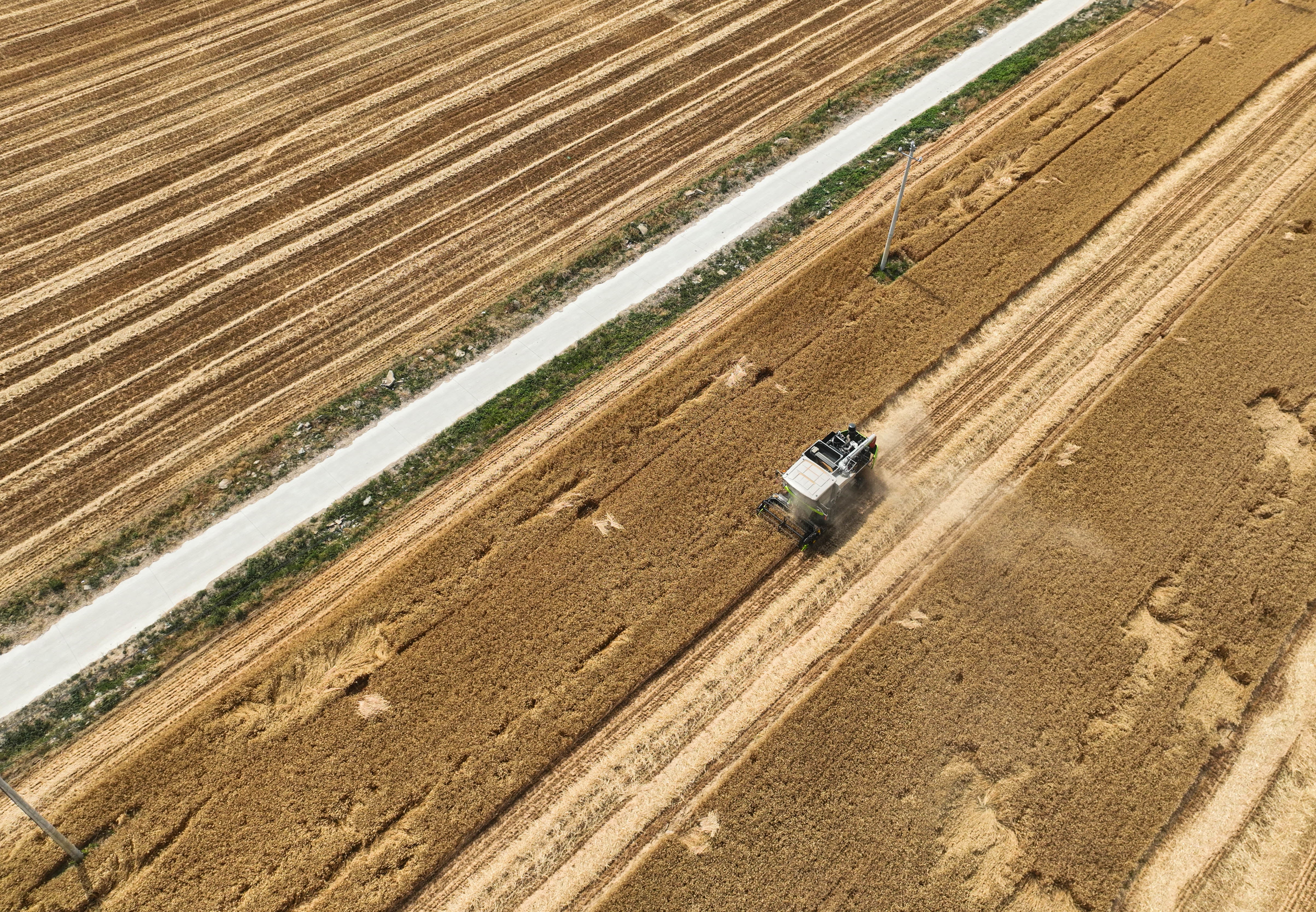 6月6日,在該縣新屯鎮(zhèn)西黃甫村的麥田里,幾臺聯(lián)合收割機(jī)來回穿梭,麥浪滾滾、機(jī)器轟鳴、麥秸飛揚(yáng)......成熟的小麥顆粒飽滿、粒粒金黃,種植戶們的臉上都洋溢著滿滿的幸福與滿足。“我今年種了300多畝小麥,畝產(chǎn)在1200斤左右,用機(jī)械收割,不到兩天就收完了,既省時又省力,小麥?zhǔn)胀旰螅ゾo把地一翻,種上玉米。”種植大戶王洪圖笑著說道。