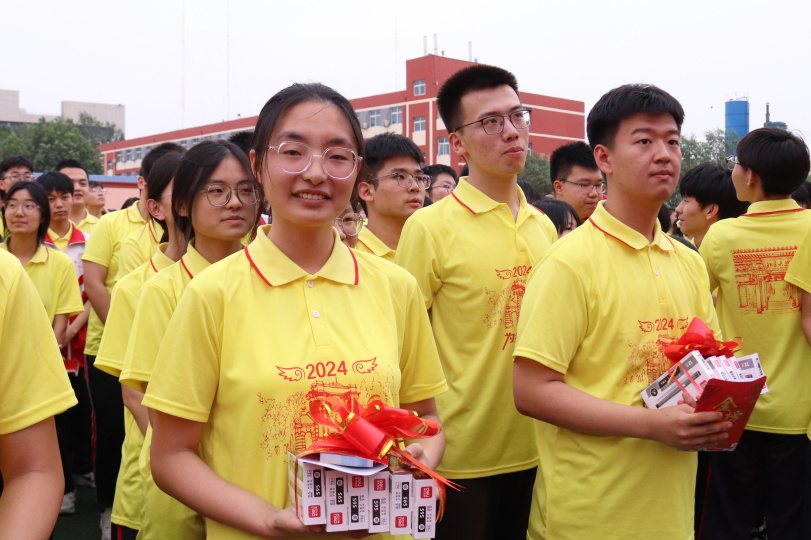 學(xué)校領(lǐng)導(dǎo)班子為高三學(xué)子送上了“十全十美”祝福和印有十三中校訓(xùn)的“好事成雙”奮進(jìn)筆,希望同學(xué)們能夠牢記“奮進(jìn)!——為中華之崛起”的校訓(xùn),在考場(chǎng)上筆下生風(fēng),才思泉涌,十全十美,金榜題名!