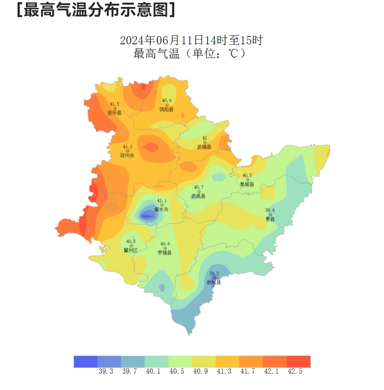 未來幾天高溫持續發展,衡水市氣象臺6月11日15時16分發布高溫紅色預警信號,預計11日下午到12日白天,衡水市全部縣(市、區)最高氣溫可達40℃以上。全市大部地區中暑氣象風險等級為Ⅰ級,極易發生中暑。而到了13日更是將沖刺本次高溫過程的峰值,大家要做好防暑降溫“持久戰”的準備。