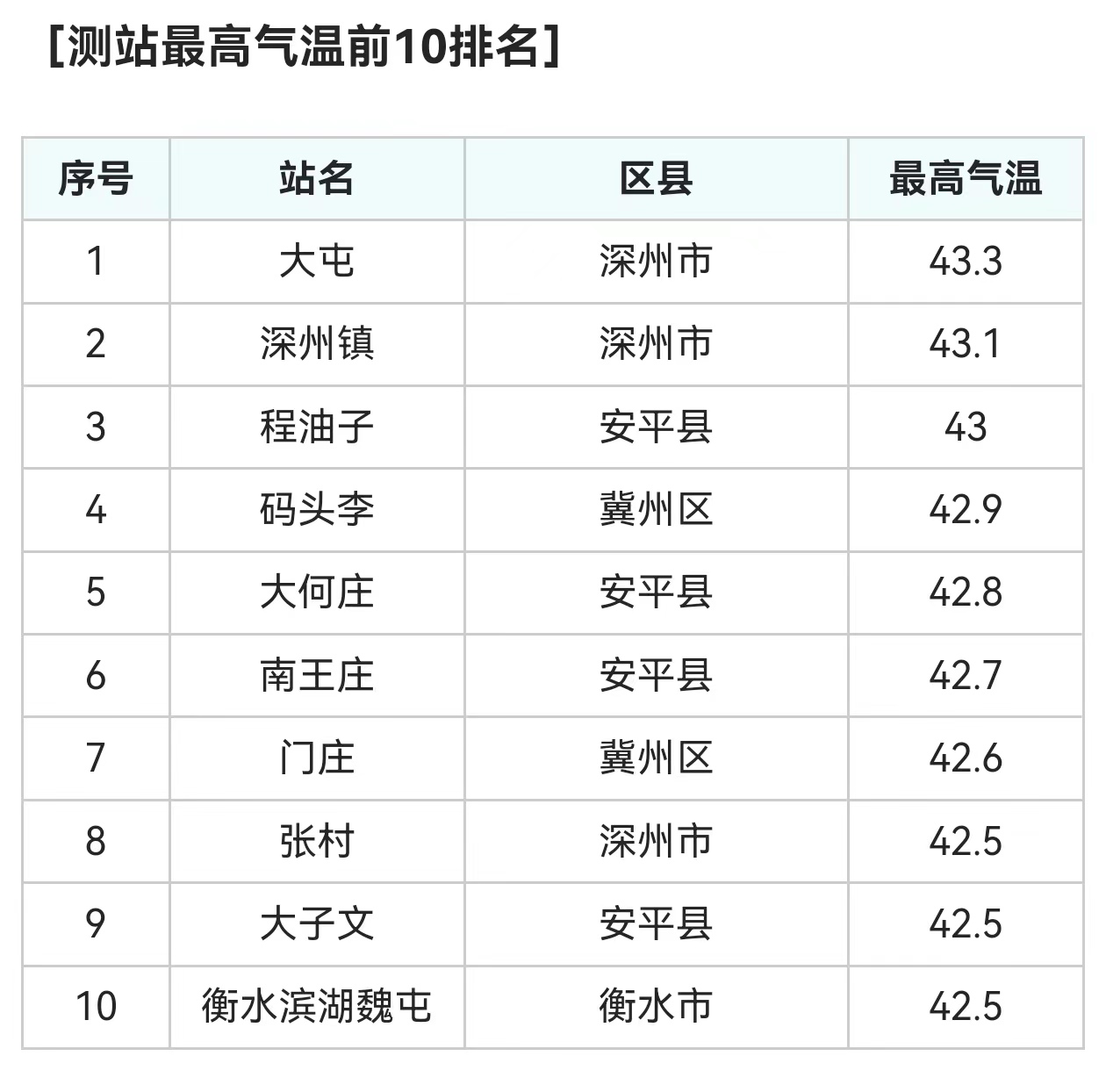 6月11日,全市各地飽受高溫“烤”驗,今年以來影響范圍最廣、強度最強的高溫過程持續發威。從午后1時的河北省整點氣溫圖上看,咱們衡水真是紅得發紫,全市40℃以上的地方連成了片。到了午后3時,深州大屯最高氣溫更是高達43.3℃,高溫炙烤、烈日炎炎,大家直呼“走在戶外仿佛來到了火焰山”。