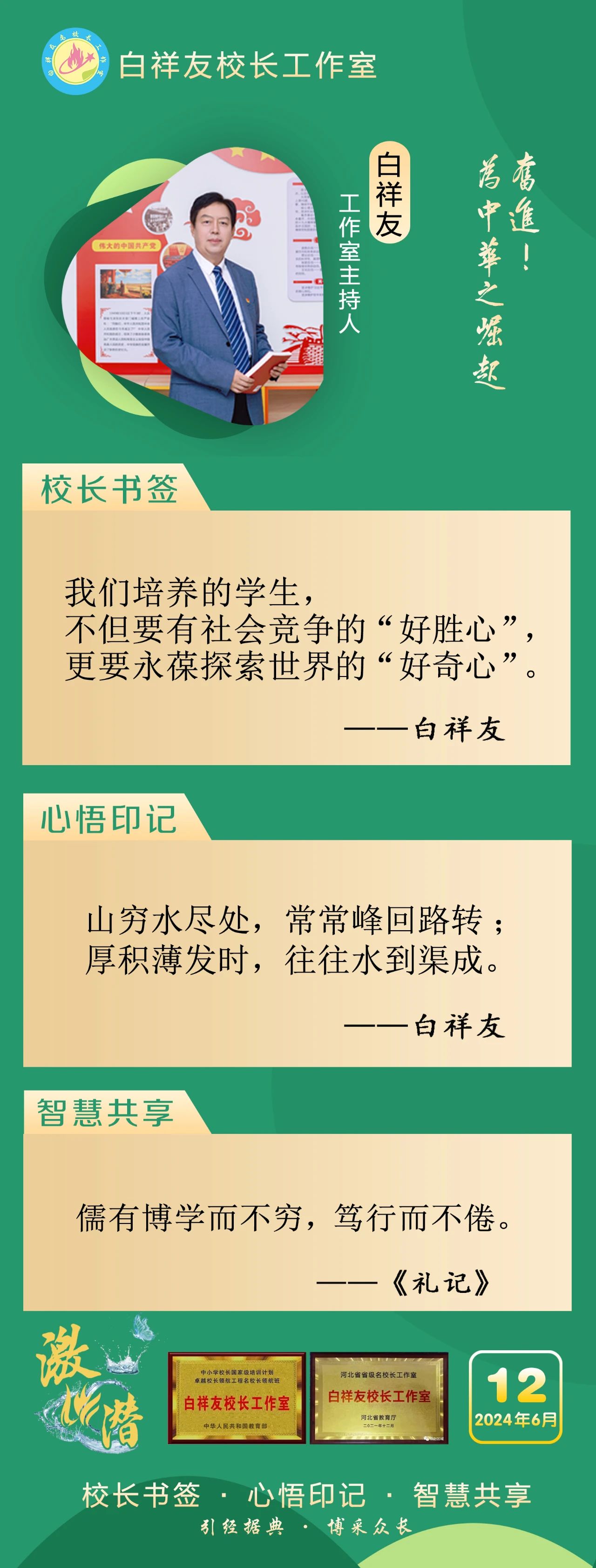 “白祥友校長工作室”成立于2019年4月,是教育部“國培計劃”中小學名校長領航工程、河北省首批名校長工作室,目前省內外成員校20個。工作室堅持“資源共享、智慧共融、互助共贏”理念,已成為思想碰撞的交流場,資源共享的品牌站,成果展示的輻射源。