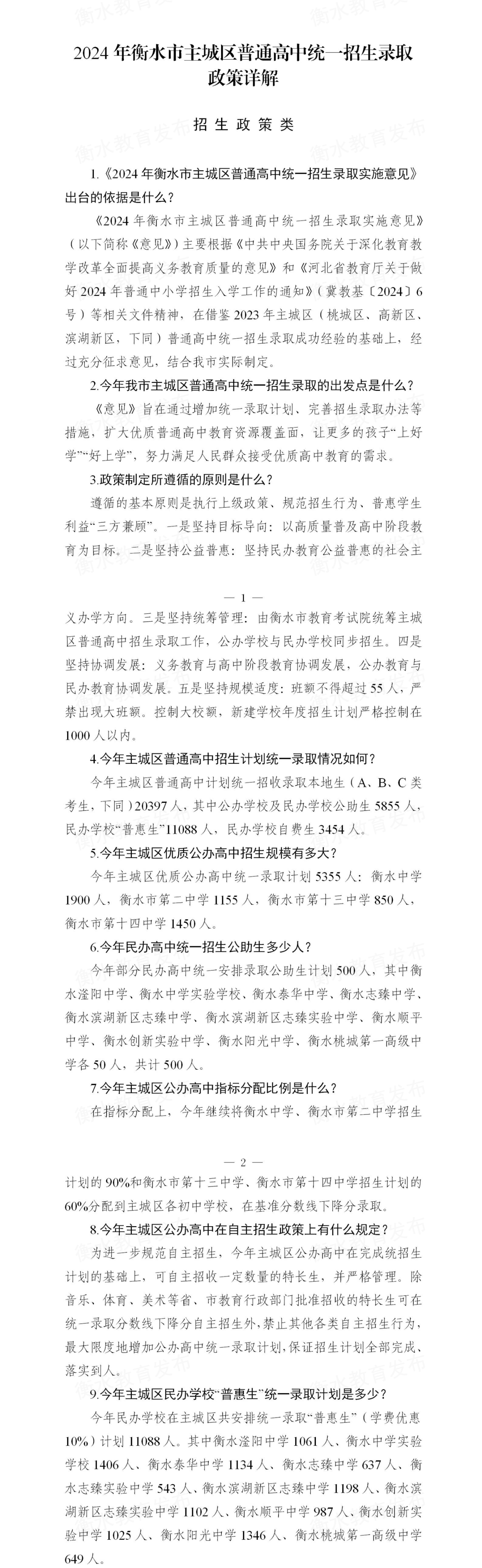 日前,衡水市教育局正式公布了2024年主城區普通高中統一招生錄取政策詳解,旨在明確招生標準和程序,確保招生工作的公平、公正和透明。