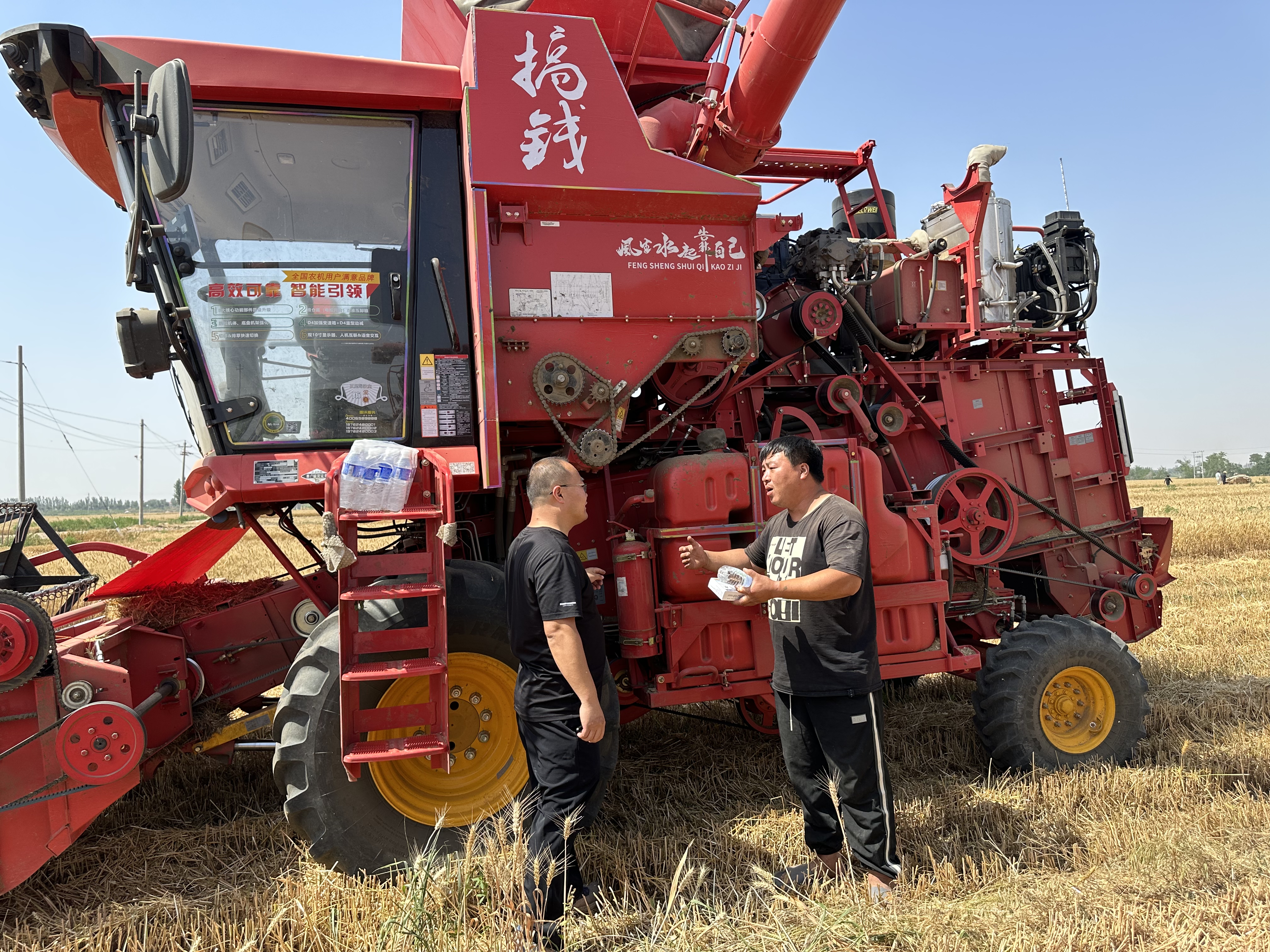 在麥?zhǔn)宅F(xiàn)場,工作人員要求農(nóng)機(jī)手做好農(nóng)機(jī)檢修維護(hù),排查安全隱患,參加作業(yè)的聯(lián)合收割機(jī)傳動(dòng)鏈、傳輸皮帶等動(dòng)力和安全部件應(yīng)安裝牢固,并配備合格有效的滅火裝置,放在易于取放的位置。養(yǎng)成良好操作習(xí)慣,調(diào)頭和倒車時(shí)及時(shí)觀察周邊環(huán)境,切實(shí)筑牢農(nóng)機(jī)安全生產(chǎn)防線。