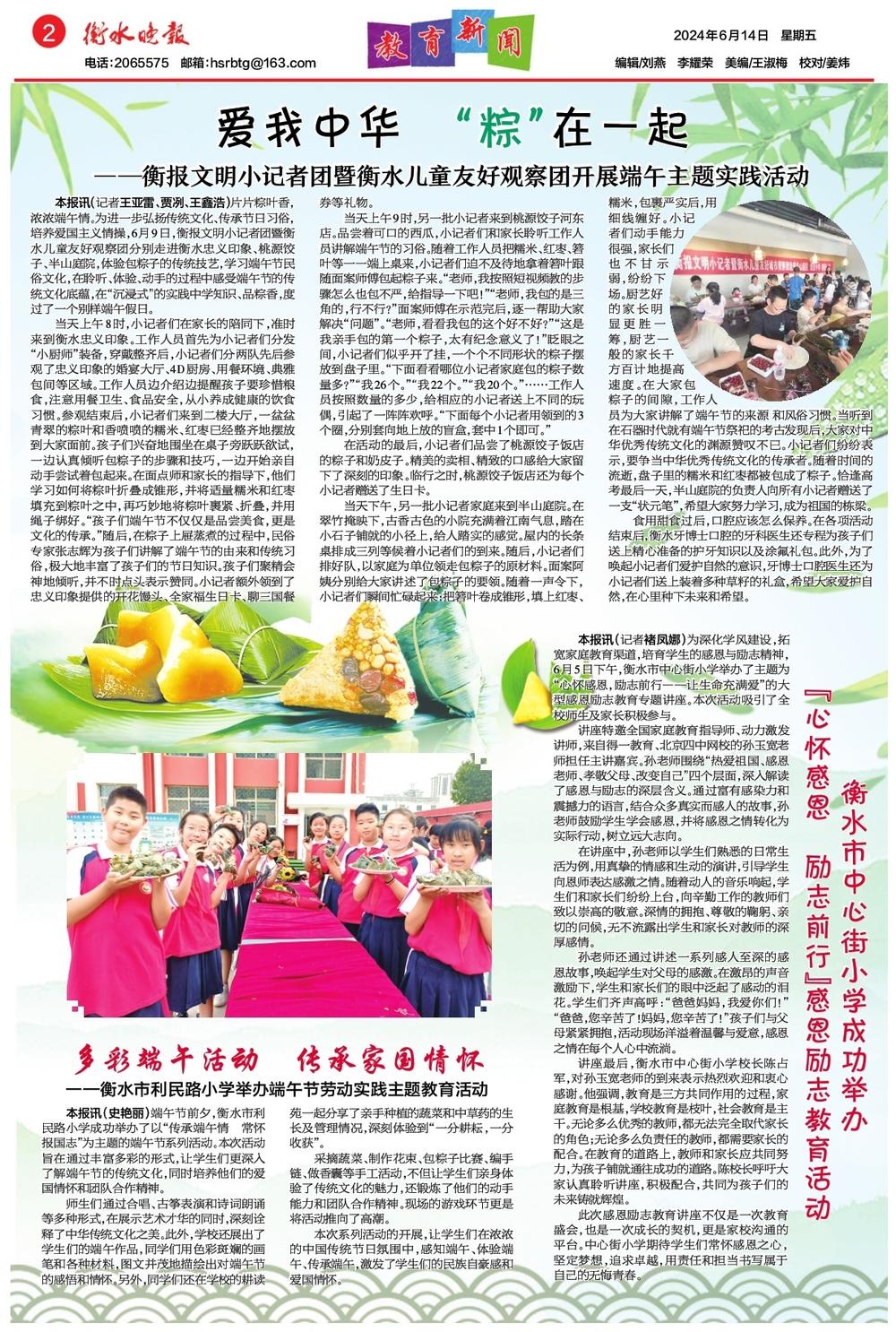 本報(bào)訊(記者褚鳳娜)為深化學(xué)風(fēng)建設(shè),拓寬家庭教育渠道,培育學(xué)生的感恩與勵志精神,6月5日下午,衡水市中心街小學(xué)舉辦了主題為“心懷感恩,勵志前行——讓生命充滿愛”的大型感恩勵志教育專題講座。本次活動吸引了全校師生及家長積極參與。