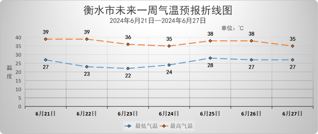 具體天氣預(yù)報為:6月21日,陰有雷陣雨轉(zhuǎn)多云,西南風(fēng)2級轉(zhuǎn),西北風(fēng)3~4級,氣溫:34到23℃;6月22日,多云轉(zhuǎn)晴,西北風(fēng)4~5級,氣溫:39到23℃;6月23日,多云,北風(fēng)3~4級,氣溫:36到22℃;6月24日,晴間多云,氣溫:35到24℃;6月25日,晴間多云,氣溫:38到28℃;6月26日,多云轉(zhuǎn)晴,氣溫:38到27℃;6月27日,多云,氣溫:35到27℃。