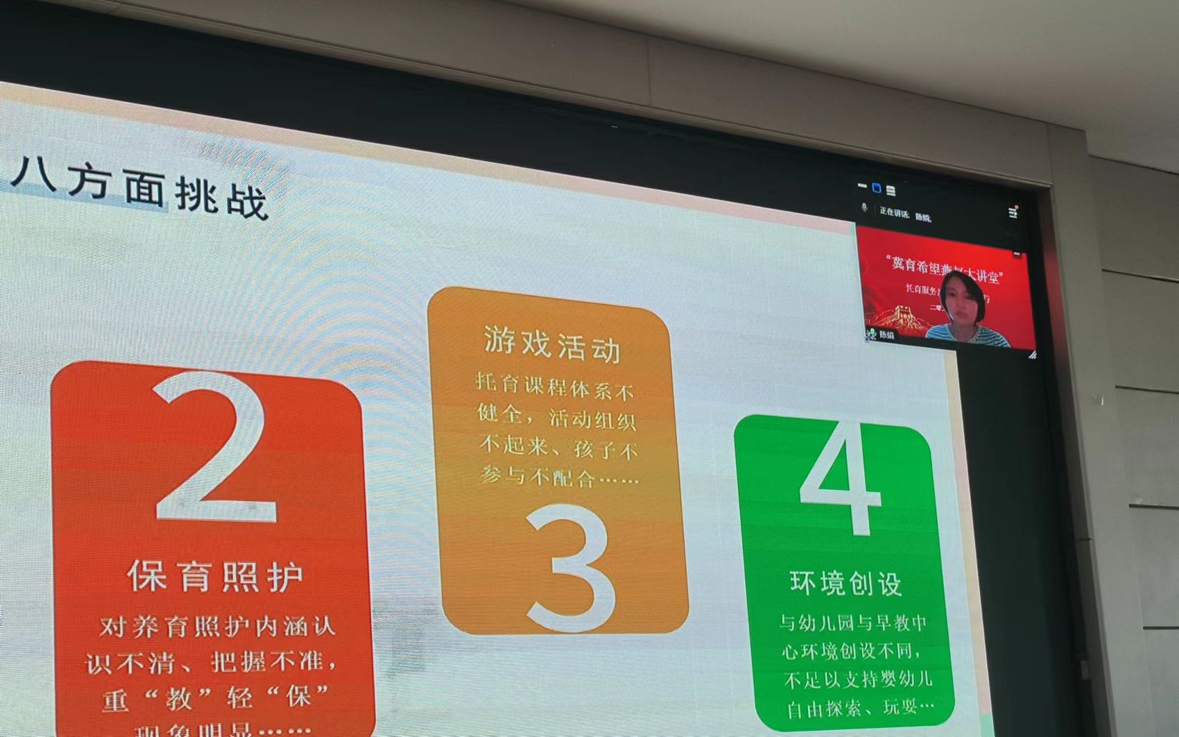培訓中,河北省衛健委特邀到多位優秀講師通過現場或視頻連線的方式,分別對2023年河北省托育機構示范創建工程復核評估結果進、國家衛健委《托育機構質量評估標準》向參會人員進行了分析和解讀,并針對托育機構服務體系建設和國家倡導的醫育結合模式探索經驗進行了經驗分享。同時,衡水市衛健委對中央財政支持普惠托育服務發展示范項目也進行了專題培訓。