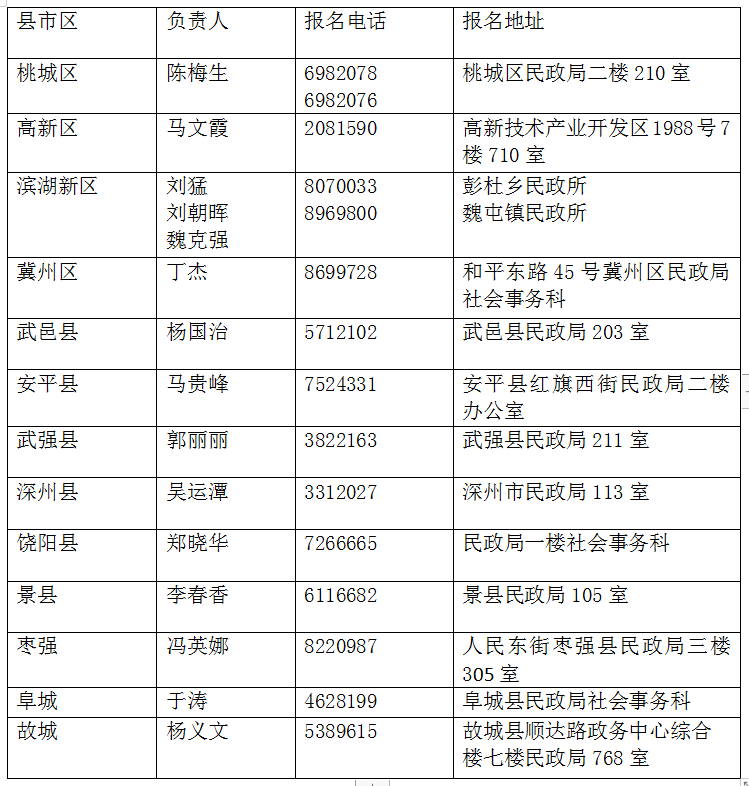 報名電話及地點為學生戶口所在地的各縣市(區)民政局(具體信息如下圖)。