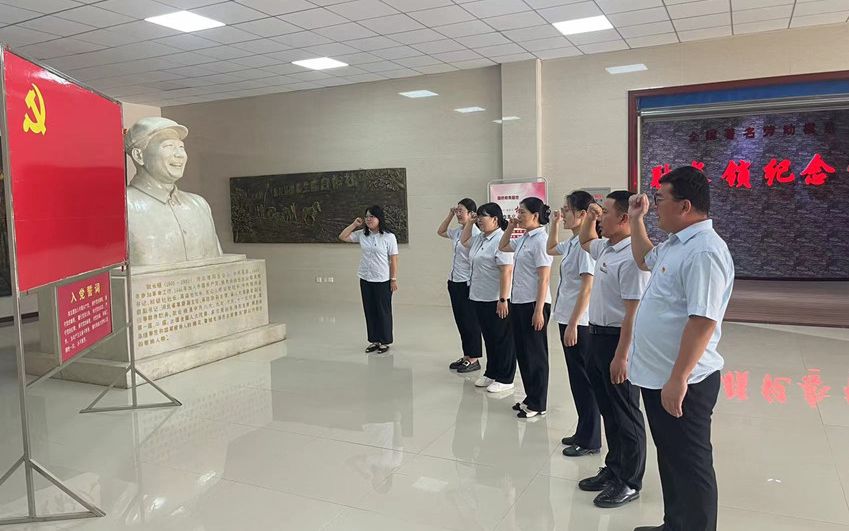 全體黨員在講解員的引領下,參觀了紀念館內歷史陳設,深入了解全國第一個土地合伙組的誕生和發展史,追憶全國勞動模范耿長鎖的先進事跡,共同學習了“實事求是、艱苦奮斗、廉潔奉公、一心為民”的耿長鎖精神。參觀結束后,舉行了“重溫入黨誓詞”宣誓活動,全體黨員面向鮮紅的黨旗莊嚴宣誓,表達對黨的無限忠誠和堅定決心。