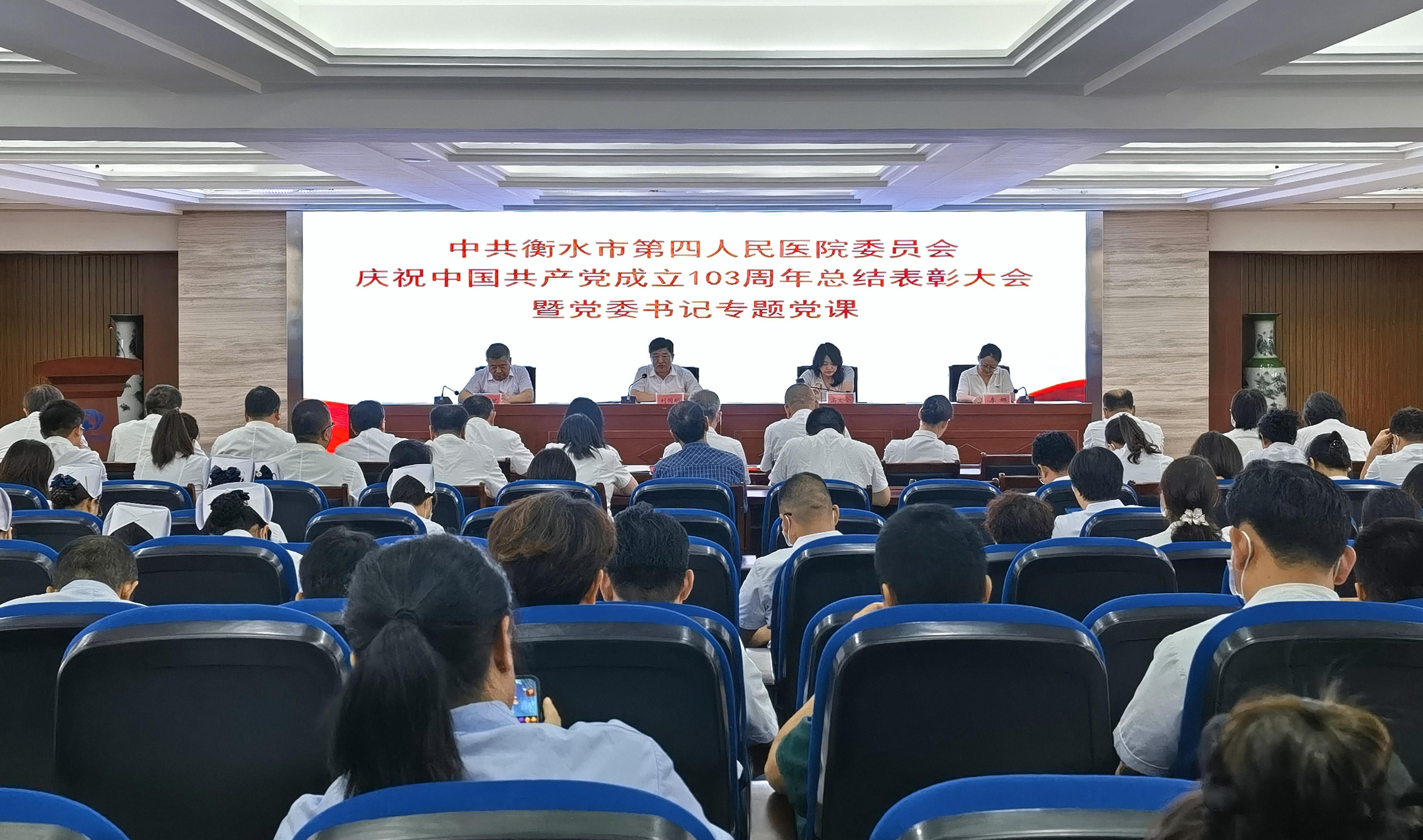 新征程是充滿光榮和夢想的遠征,沒有捷徑,唯有實干;只有心懷夢想、不斷超越,才能贏得時代榮光。6月29日上午,衡水市第四人民醫院黨委召開慶祝中國共產黨成立103周年大會,表彰優秀集體和個人、聆聽黨委書記講黨課。大會號召廣大黨員干部“忠誠于黨 ‘醫’心‘衛’民”,增強獻身衛生事業、報效祖國的責任感和使命感, 堅守初心使命、主動擔當作為,為黨和人民建功立業!
